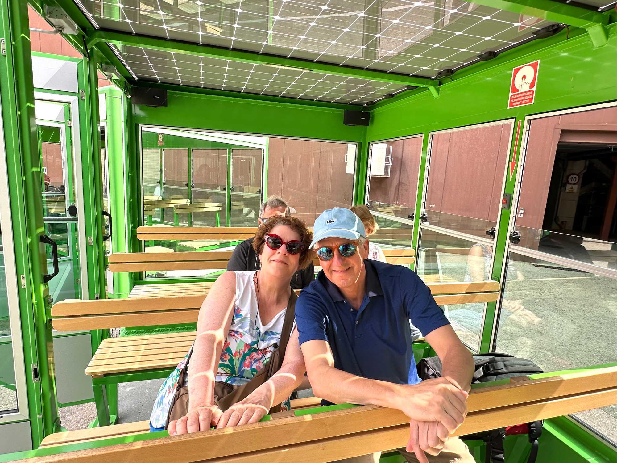 A bord d'un mini train, nous visitons les caves du vignoble Mas La Plana où l'un des meilleurs rouges est produit. Puis, nous visitons la cave Waltraud où les vins du domaine sont vieillis, et dégustons à nouveau quatre vins.
