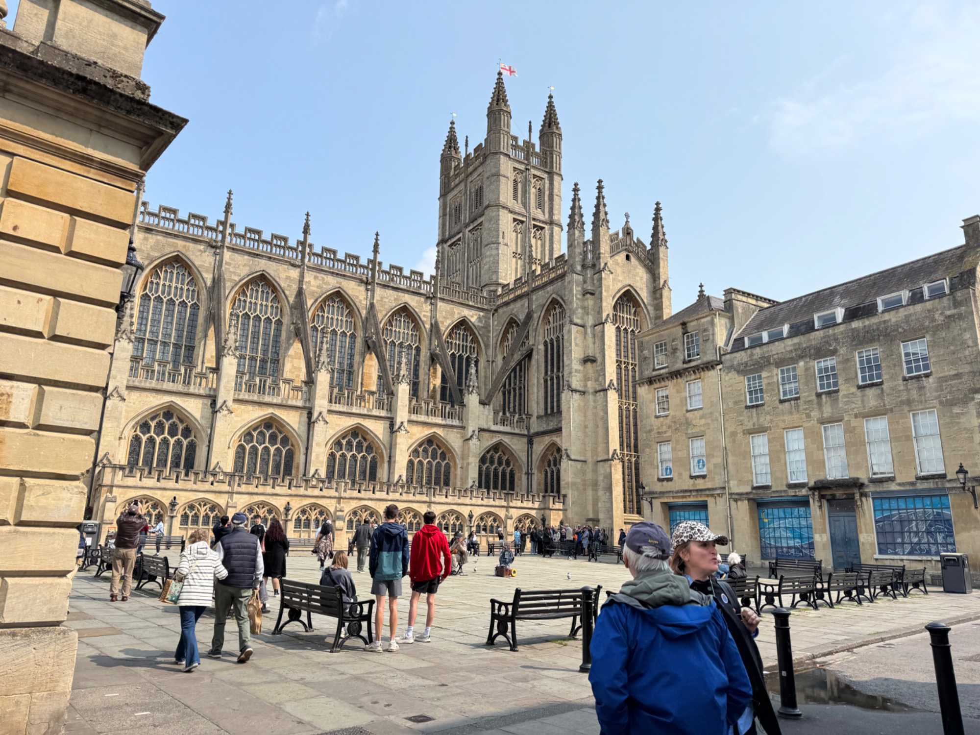 Nous visitons Bath en premier par une courte promenade à pied avec notre guide avant de nous rendre à un pub anglais typique. Ça fait du bien de se dégourdir les jambes. Cette ville est tellement élégante et sophistiquée, célèbre pour ses bains romains historiques, son architecture et ses rues pavées.