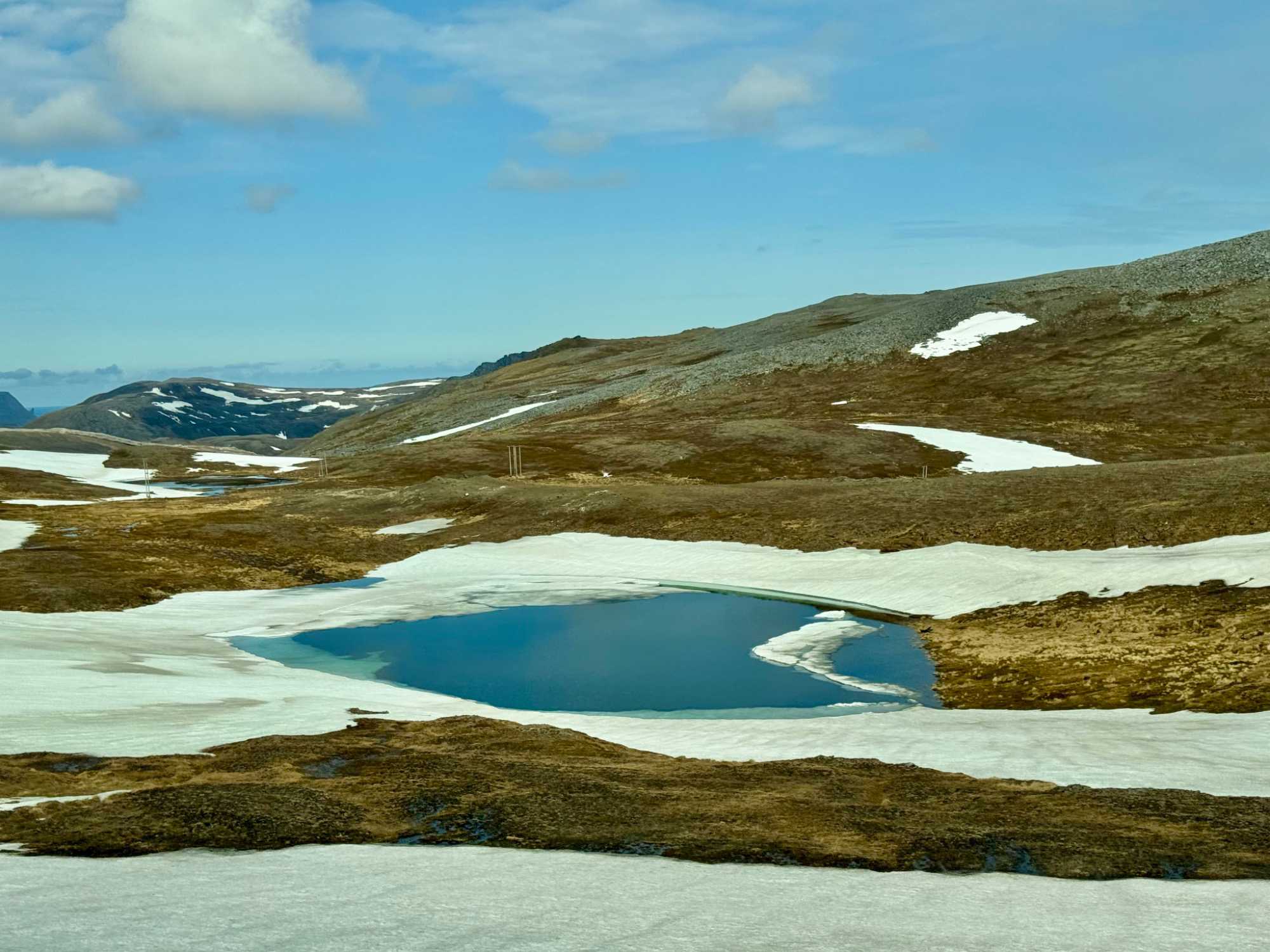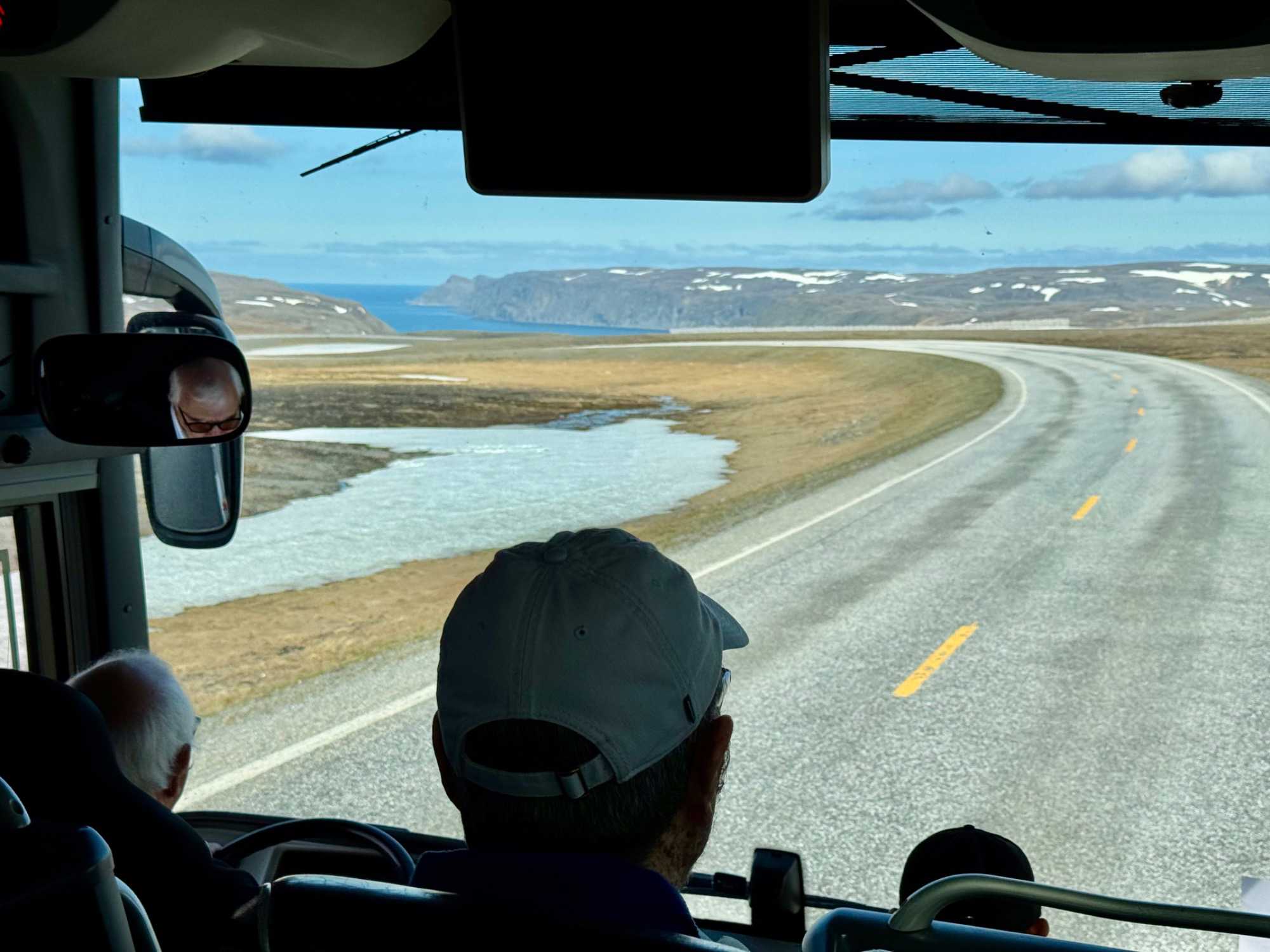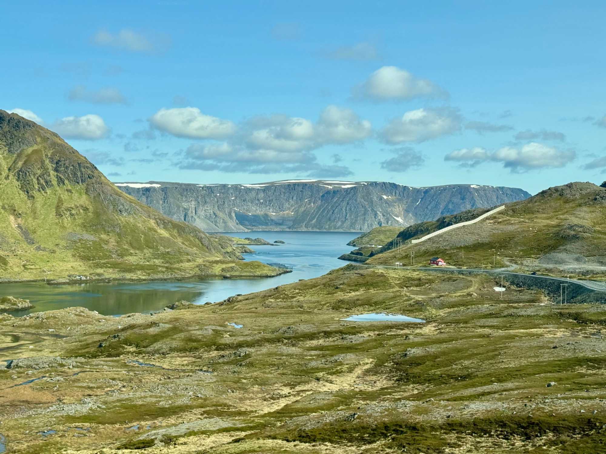 Nous arrivons à Honningsvåg, le point le plus au nord de notre itinéraire. La température est la plus fraîche du voyage, environ 5-6 degrés C, et, à certains endroits nous pouvons voir de la neige. Nous sommes très contents car nous avons une belle journée. Surtout que les prévisions météo nous annonçaient de la pluie depuis quelques jours. Nous menons une bonne vie !