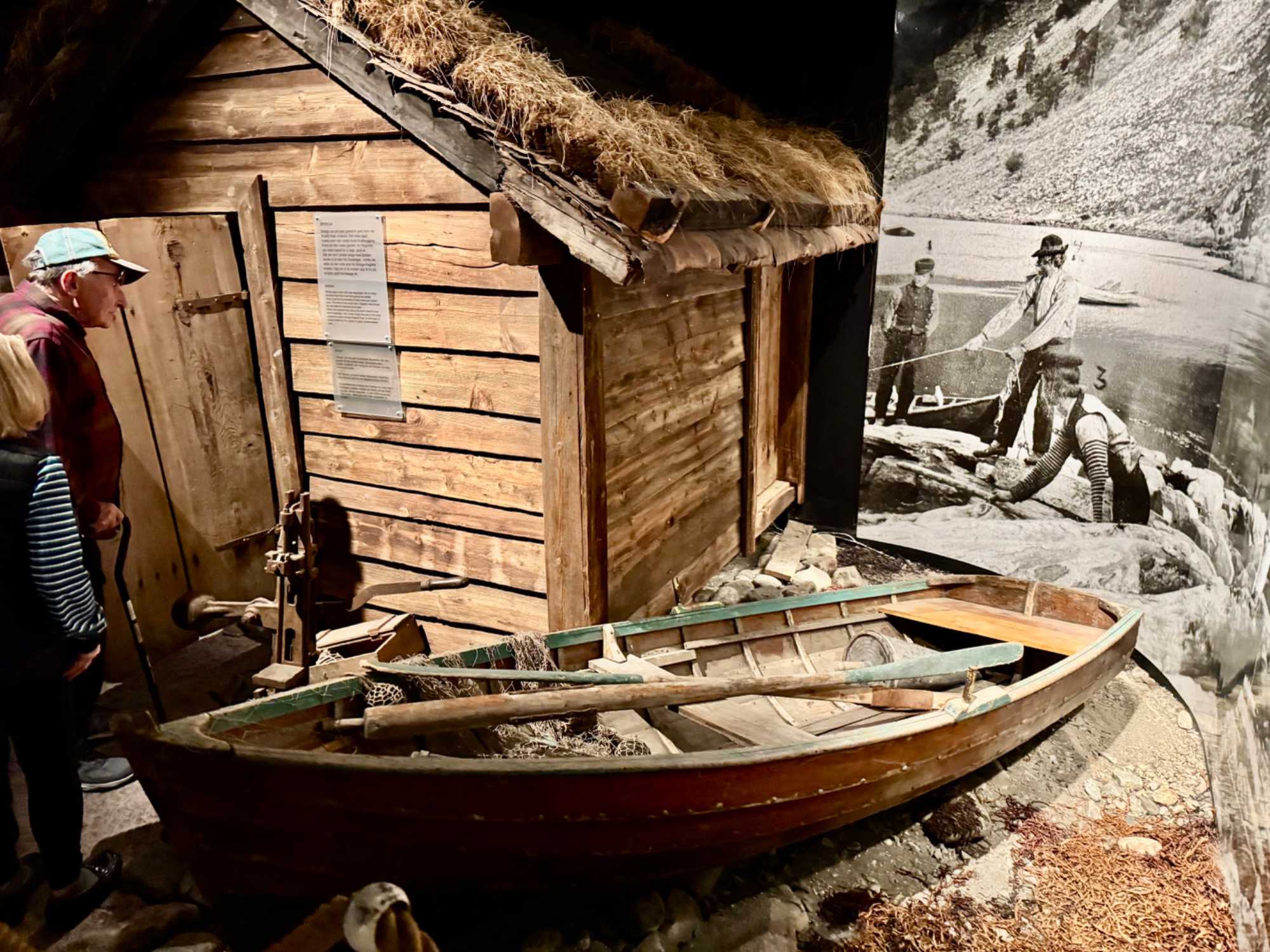 Nous embarquons dans un autobus organisé par Celebrity pour gravir une route à la fois sinueuse et montagneuse. Notre premier arrêt est au Centre Norvégien du Fjord. Un film sur le Fjord nous est présenté, il illustre ce site étonnant du patrimoine mondial au fil des quatre saisons. Avec des expositions sur la vie des habitants du Geirangerfjord, le Centre présente de manière remarquable l’histoire du peuple, ses habitations historiques et les paysages naturels fabuleux de la région. Les expositions nous donnent des renseignements sur la flore et la faune, la géologie (notamment sur les éboulements), la population et la nature. À l’extérieur du centre se trouve une grande quantité de véhicules Ferrari puisque Geiranger est l’hôte aujourd’hui du rendez-vous des propriétaires de ces véhicules de luxes. Pour une population de 5 millions, la Norvège semble avoir beaucoup de richesse démontré par cet impressionnante démonstration des véhicules de grande valeur.