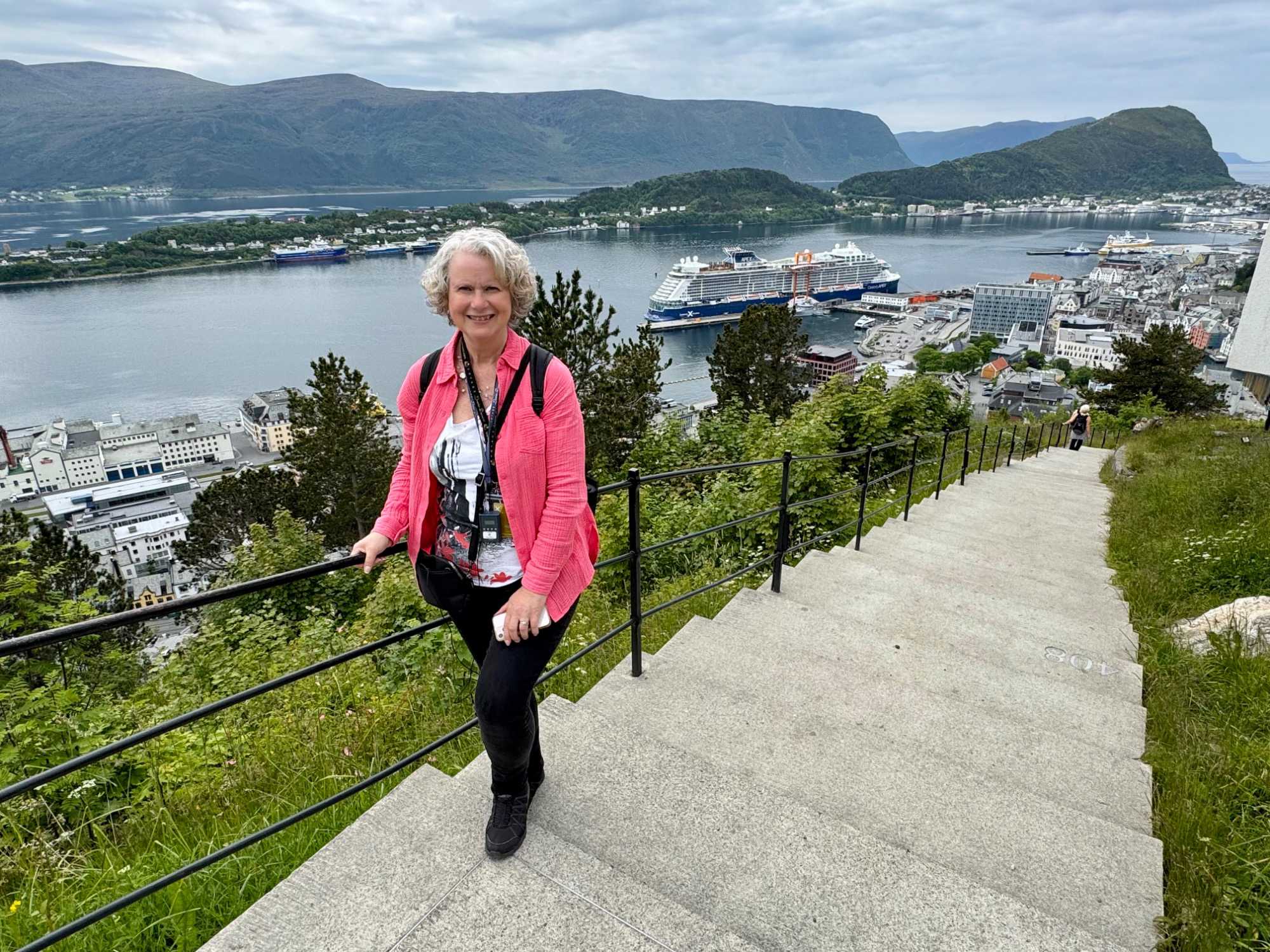 Ce matin à notre réveil, nous approchons de Ålesund. La journée est ensoleillée et nous aurons un bon 20 degrés C. Le navire accoste à 8h00. Ce n’est pas un hasard si Ålesund et ses environs sont l’un des sites les plus visités par les touristes en Norvège. « Ålesund semble être le décor rêvé d’un conte de fées nordique, avec une intrigante touche moderne », selon le National Geographic.