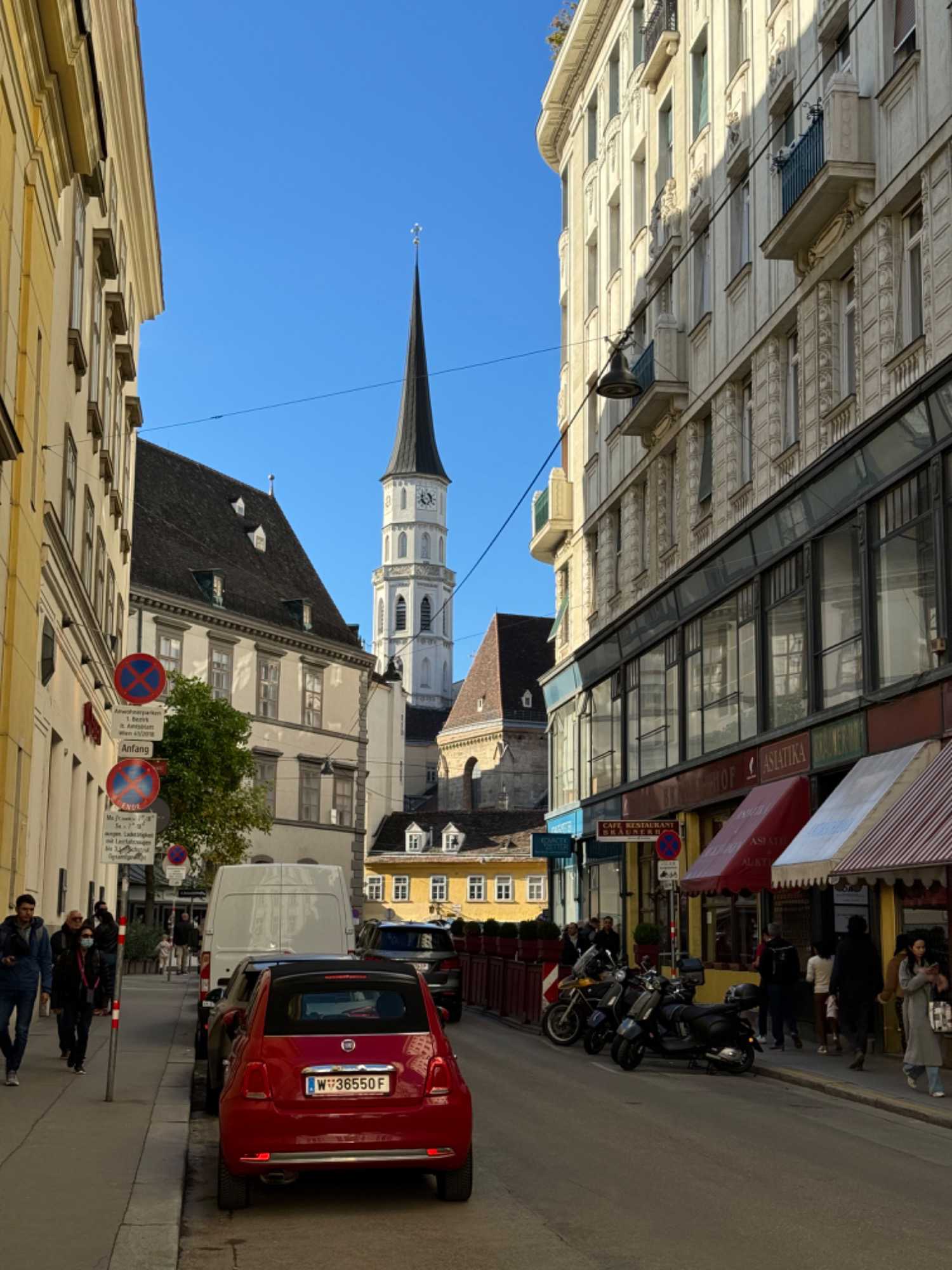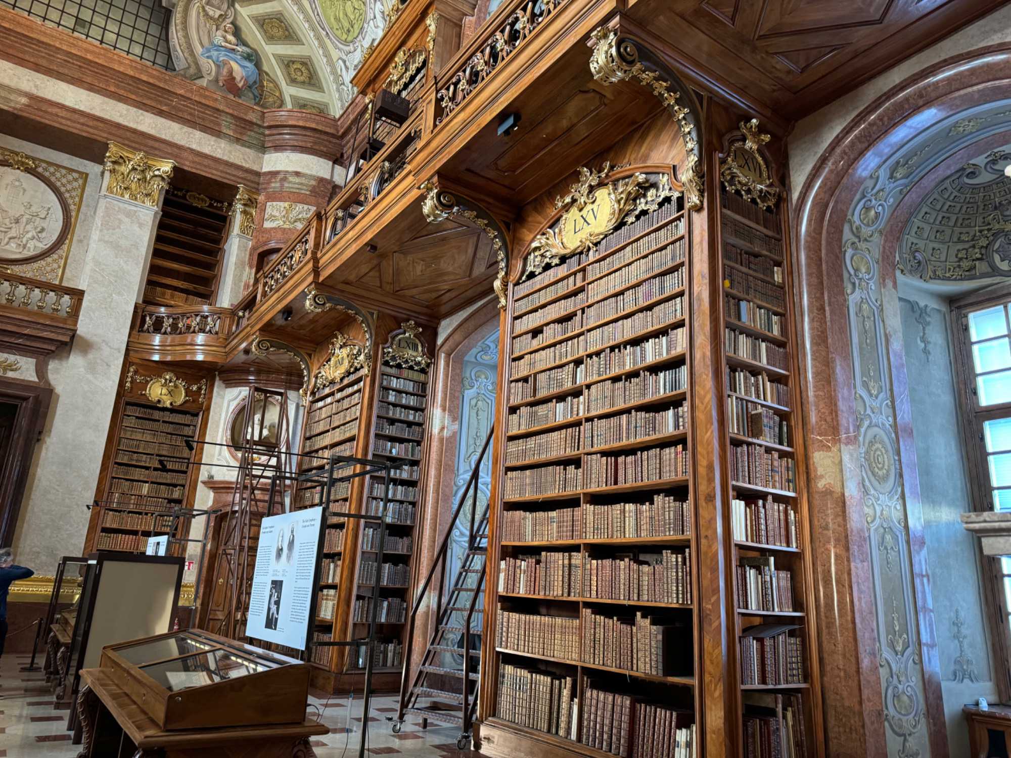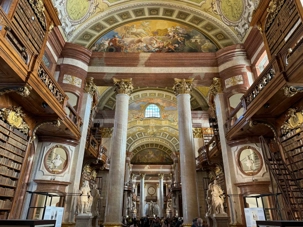 Nous retournons au navire pour le dîner. Par la suite, plusieurs voyageurs ont décidé de prendre leur après-midi en temps libre et, suivant les indications données au préalable par notre guide du matin, il a été très facile de prendre le métro situé à 10 minutes à pied de notre navire pour se rendre à la station Stephansplatz située en face de la Cathédrale afin d’explorer la vieille ville à notre rythme. On découvre, lors d’une belle promenade, quelques lieux incontournables tels que la Bibliothèque Nationale avec sa grande collection de livres (qui englobe actuellement près de 4 millions de livres). Le « Hall d’État » y est majestueux. Ce hall, construit au 18e siècle dans le cadre de l’ancienne bibliothèque de la Cour, mesure près de 80 mètres de long et 20 mètres de haut. Un dôme finement décoré et de nombreuses fresques confèrent une touche impériale. Ce bijou baroque abrite quatre magnifiques globes vénitiens, chacun d’un diamètre supérieur à un mètre, ils apportent la touche finale au coeur de la Bibliothèque nationale autrichienne. On visite aussi la maison de Mozart.