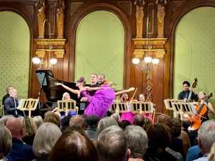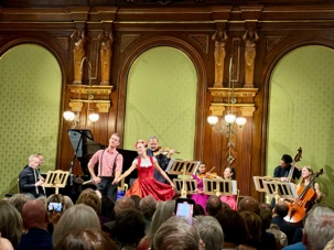 Nous sommes tous de retour au bateau à temps pour le souper car nous avons une soirée libre. Pour ceux qui le désiraient, il a été possible, de participer à une activité facultative, pour assister à un concert de musique classique et d’opéra dans une élégante salle du Palais Eschenbach. Il s’agit d’un bâtiment historique situé au cœur de Vienne, près de la célèbre Ringstrass, le plus beau et le plus magnifique boulevard de Vienne. Inauguré par l’empereur François-Joseph Ier d’Autriche en 1872, il a été construit dans le style clair du classicisme palladien selon le projet de l’architecte Otto Thienemann. La grande salle de banquet avec son impressionnant plafond à caissons, ses arcades et ses nombreux pilastres de marbre, ne reflète pas seulement la grande époque de la dynastie Strauss, mais offre également à ses visiteurs une expérience acoustique vraiment étonnante. Au programme ce soir, nous avons un concert privé constitué des airs et des extraits d’opéras de Strauss et Mozart. Ce concert arrive à point pour nous puisque Vienne a longtemps été considérée comme la capitale mondiale de la musique. De nombreux compositeurs de renommée mondiale s’y sont succédés pendant des siècles.