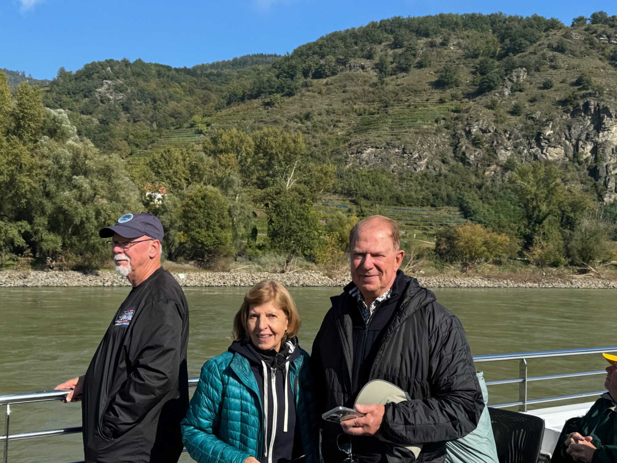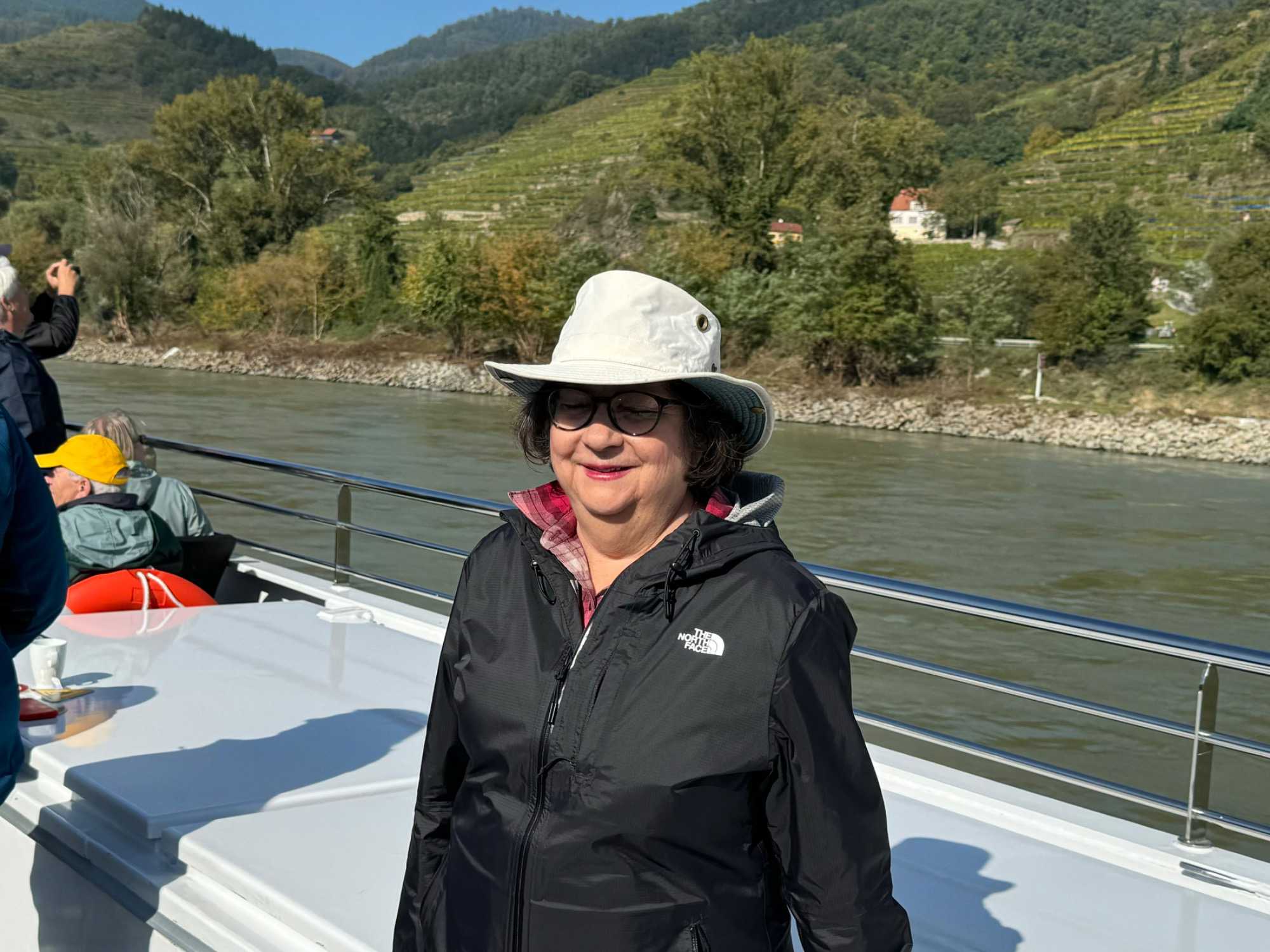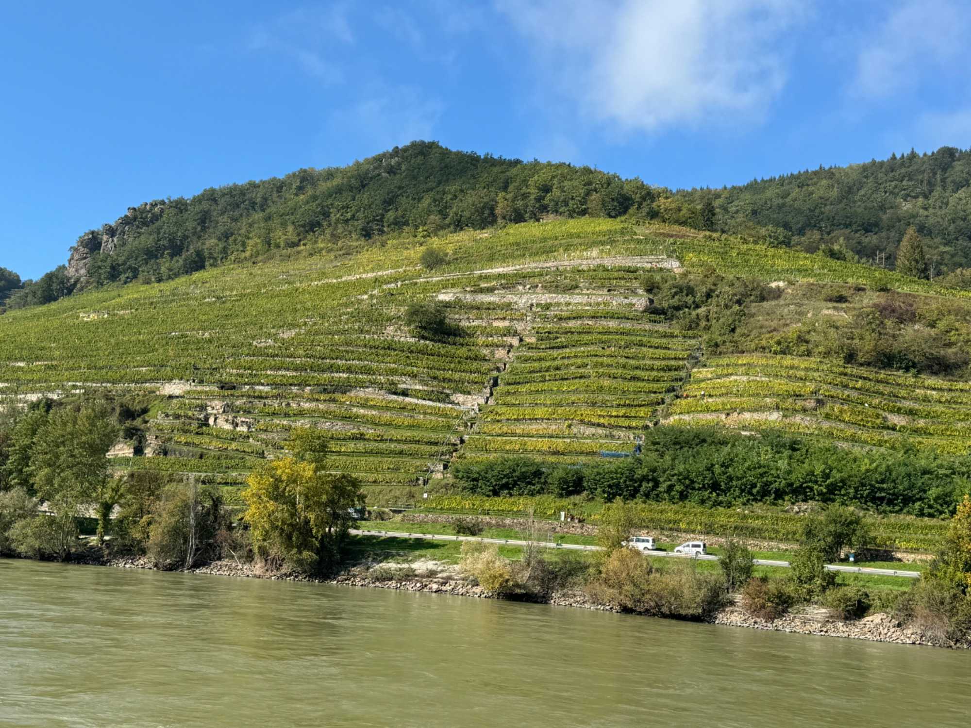 Le bateau repart un peu avant le dîner et nous profitons du paysage, bien installé sur le Sky Deck. Les voyageurs sont contents des vues sur la Vallée de la Wachau tout en écoutant les commentaires de notre directeur de croisière, Tony. Nous observons tout ce qui nous entoure. Des magnifiques paysages défilent sous nos yeux. Tranquillement, nous passons devant des vignobles, des châteaux et des charmants villages. Nos voyageurs sont sous le charme de la beauté de ces paysages par un temps splendide. Plusieurs d’entre nous prenons de superbes photos pour immortaliser ce moment. Que nous sommes choyés !