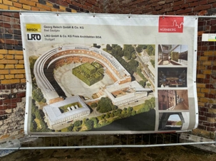 Christine est notre guide française spécialisée pour notre excursion. Nous débutons par un tour de ville en autobus dans le quartier du Kongresshalle où Hitler voulait construire un Colisée. Nous débarquons pour voir l’emplacement de la fameuse tribune du terrain Zeppelin d’où Hitler pouvait sermonner toute une foule de jeunes soldats engagés dans le but de redonner à l’Allemagne sa fierté d’antan…