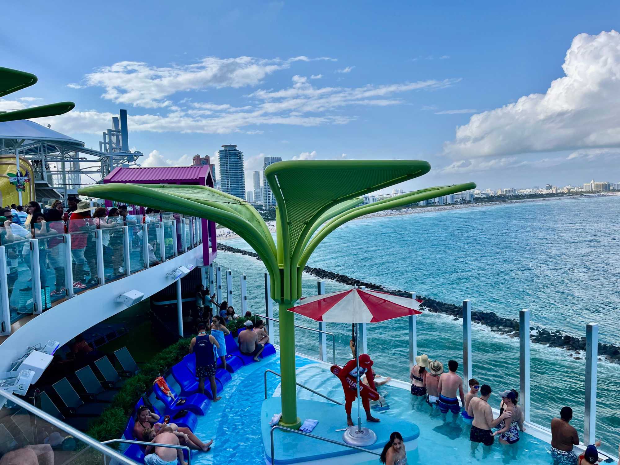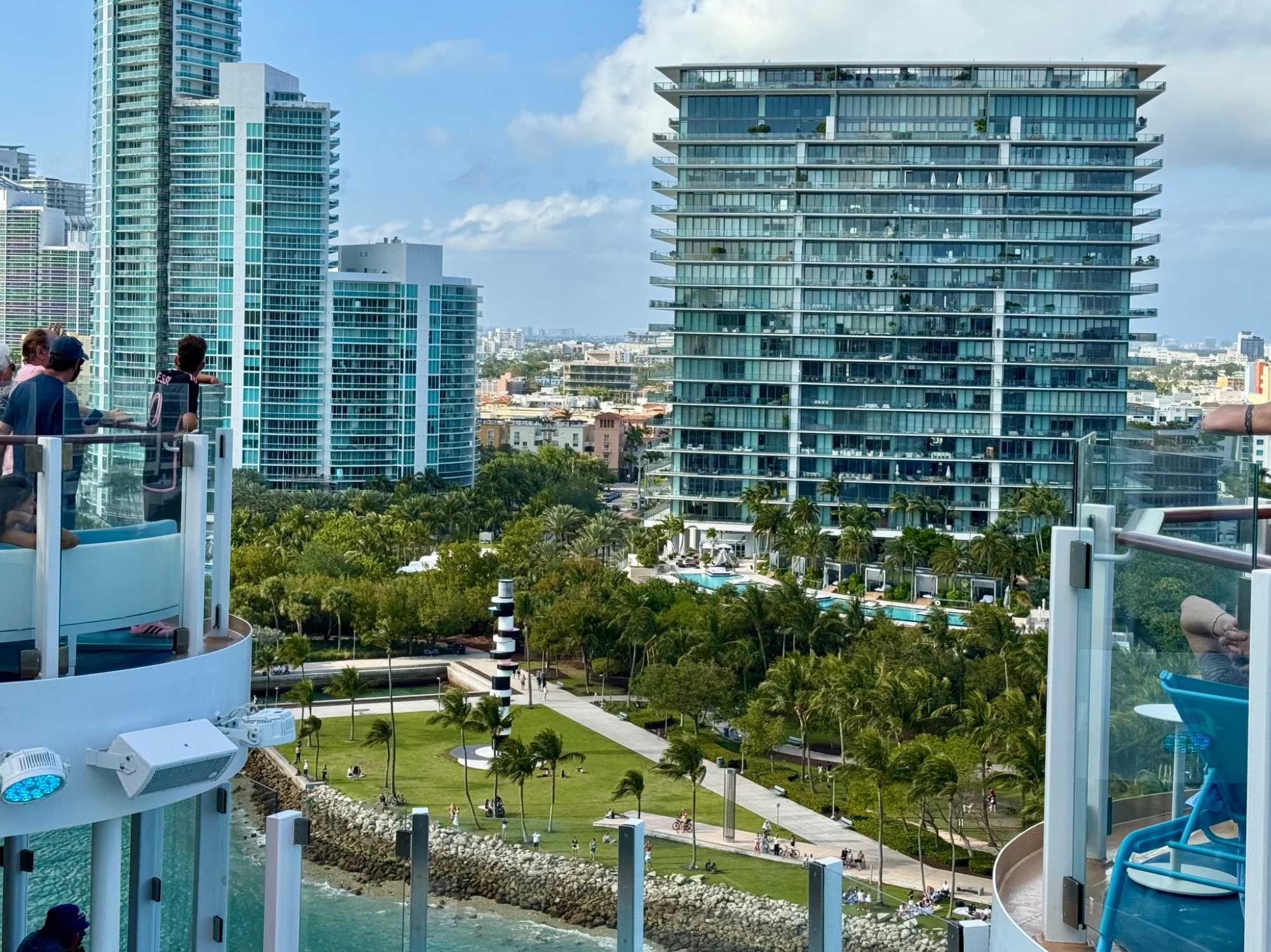 Nous sommes prêts à lever l’ancre pour une aventure Royale inédite à bord de l’Icon of the Seas ! C’est à 17h00 que les membres d’équipage retirent les amarres afin de partir en direction des Caraïbes. Nos voyageurs, bien installés un peu partout sur les ponts, apprécient la belle vue de Miami Beach et de sa fameuse plage « South Beach ». Plusieurs passants et bateaux sont présents à la pointe sud du port pour voir passer ces mastodontes des mers et nous sommes sur les ponts à leur faire de grands signes de la main !