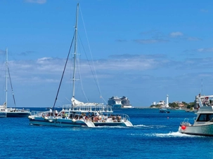 Nous proposons à nos voyageurs d’aller marcher le long du littoral. Plusieurs viennent avec nous. Chemin faisant, nous trouvons de nombreux petits commerces offrant aux touristes des accès à la mer des Caraïbes pour faire de la plongée sous-marine. Certains on même un petit restaurant jumelé à leurs installations. Les propriétaires sont sympathiques, ils nous permettent de prendre des photos à partir de leurs terrasses. Nous allons, par la suite, nous promener au quai où se trouvent de nombreux magasins, bars et restaurants. Plusieurs voyageurs espèrent repartir avec un petit bout du pays, à la recherche d’un souvenir. Les mexicains qui nous y accueillent sont d’une grande gentillesse, particulièrement lorsque nous les saluons par un « Hola ». Il n’est pas rare de voir, au terminal de croisières de Cozumel, d’immense paquebots amarrés. Nous étions sept navires aujourd’hui. Les touristes envahissent la cinquantaine de magasin de vêtements, de bijoux, de téquila et d’oeuvres d’art. De petits kiosques dirigés par des commerçants locaux proposent aux visiteurs une multitude d’objets artisanaux, allant du simple bracelet de corde au très prisé hamac ou encore, à la couverture de laine colorée. Patrick et Sylvie vont découvrir les fonds marins à bord d’un sous-marin ultra-moderne. Merci de nous avoir partagé vos photos qui viennent agrémenter notre album de la journée.