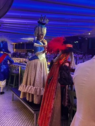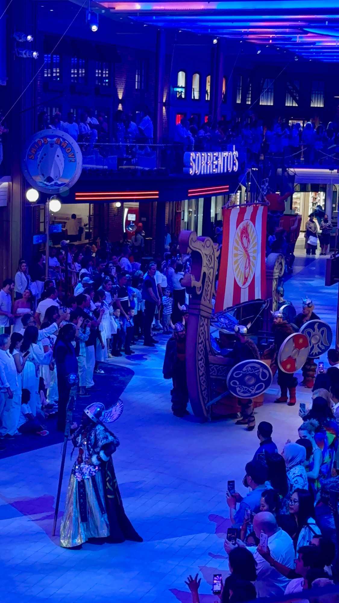 Au programme ce soir, soirée en blanc, spectacle de l’orchestre du Icon ; les 16 musiciens de la prestation du Magicien d’Oz, cordes, cuivres, basse, drum, guitare électrique récidivent pour nous offrir des version des grands airs populaires. Ils sont réglés au quart de tour. Là ne s’achève pas la soirée, Eric nous suggérait fortement d’assister à la parade de ce soir, d’accord, mais en valait-il vraiment la peine de tenir jusqu’à 10h30? Après coup, je peux vous dire qu’il ne fallait pas manquer ça ! La Promenade Royale envahie par une centaine de personnages tous vêtus de costumes de pirates, corsaires, marins, majorettes, des répliques de galères, gallions, bateaux vikings et j’en passe, ont défilé sous la criée du général juché sur son alcove. Ils nous ont grandement divertis! Wow, on ne s’ennuie vraiment pas ici et c’est le cas de le dire, la croisière s’amuse !
