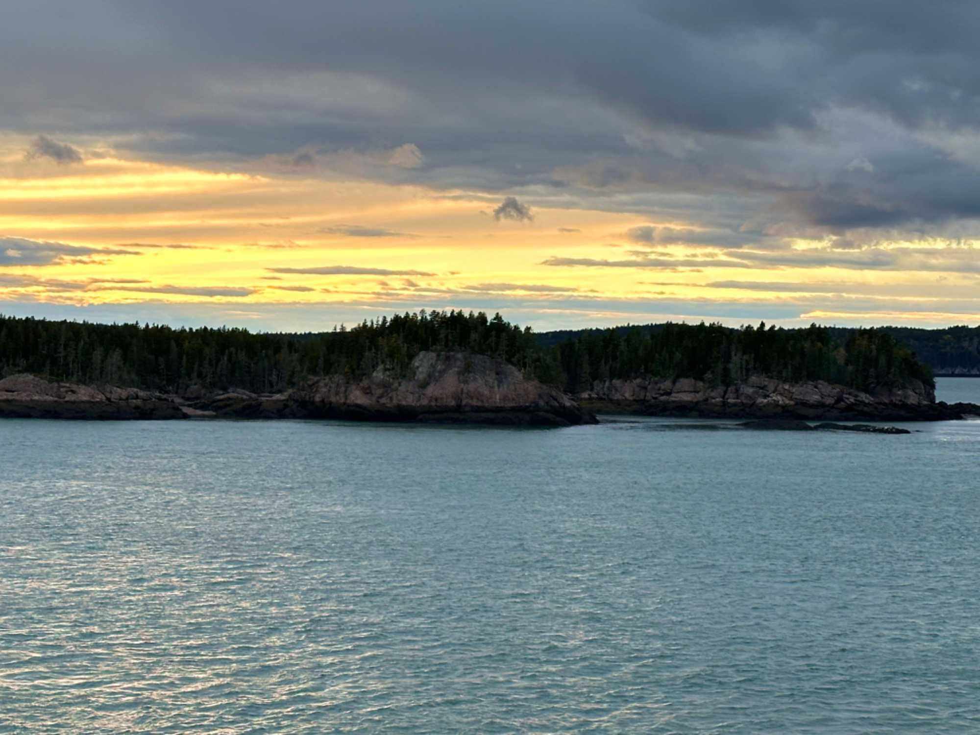 Nous nous réveillons ce matin et il fait un très beau temps, soleil mais tout de même un peu frais. Nous nous attendions à ce climat et nous sommes bien habillés pour marcher sur les ponts. Notre navire à notre réveil est à l’ancre proche de la côte. À cause des marées et aussi d’avoir dû libérer le quai où nous étions hier à Easport car un autre navire de Royal Caribbean devait prendre notre place. Dès que la marée était propice nous avons gagné un autre quai afin de laisser l’équipe de réparation continuer leur travail. Nous attendions maintenant les informations du commandant. Il nous donnait en temps et lieu les nouvelles des avancements de la réparation. Tout allait très bien et on espérait partir en fin de journée. Entretemps beaucoup d’activités à bord prenaient place pour divertir les voyageurs. Certains sont allés danser et d’autre tenter leur chance au bingo. Nous nous sommes retrouvés pour le lunch à la salle à manger qui fût encore une fois superbe. Un petit café au comptoir de café avant de profiter de notre temps libre sur le navire. Notre navire quitte finalement à 16 h 30 pour faire route vers Halifax. Nous attendons les nouvelles de notre commandant à savoir si notre navire sera de retour aux heures prévues d’escale. Je pense que oui car nous sommes en route en longeant la côte du Maine qui est particulièrement belle bien que les couleurs ne soient pas encore au maximum. Les rives escarpées sont très jolies et la navigation très calme, nous profitons de cette navigation de notre balcon ou des ponts extérieurs.