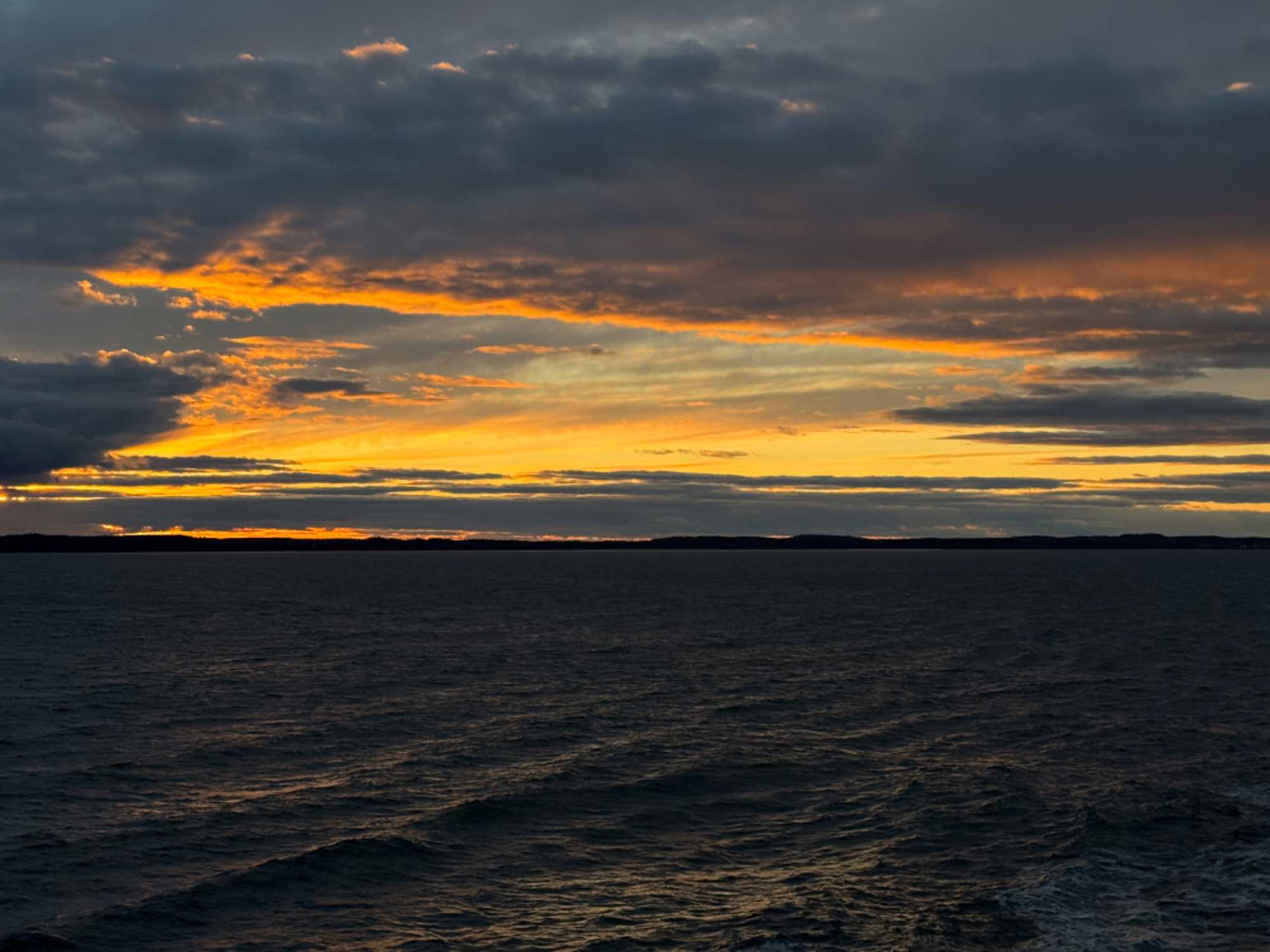Lek en a profité pour prendre plusieurs photos de notre journée à bord et de la navigation ce soir. Ce matin, nous avions tout prêt de nous les filets pour la pêche au saumon car la région est bien connue pour ses élevages de saumon de l’Atlantique.