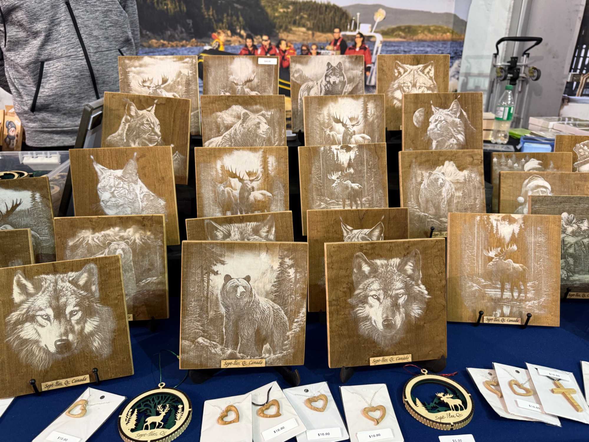 Une petite déception ce matin, la météo prévoyait du beau temps et la pluie a pris la place. Cela n’a pas empêché plusieurs voyageurs d’aller marcher sur la belle promenade car la pluie était très faible. Dans la tente aménagée par la ville et le port de Sept-îles, il y avait des artisans qui exposaient leur œuvre. Nous nous sommes laissé tenter par des produits réalisés par des autochtones Innu de la région qui utilisait du cuir et de la fourrure pour créer des très beaux objets de décoration de Noël. Dans la tente, il y avait également une chanteuse autochtone qui avait une voix magnifique et qui animait la place. On oubliait la pluie qui tombait doucement à l’extérieur.