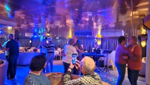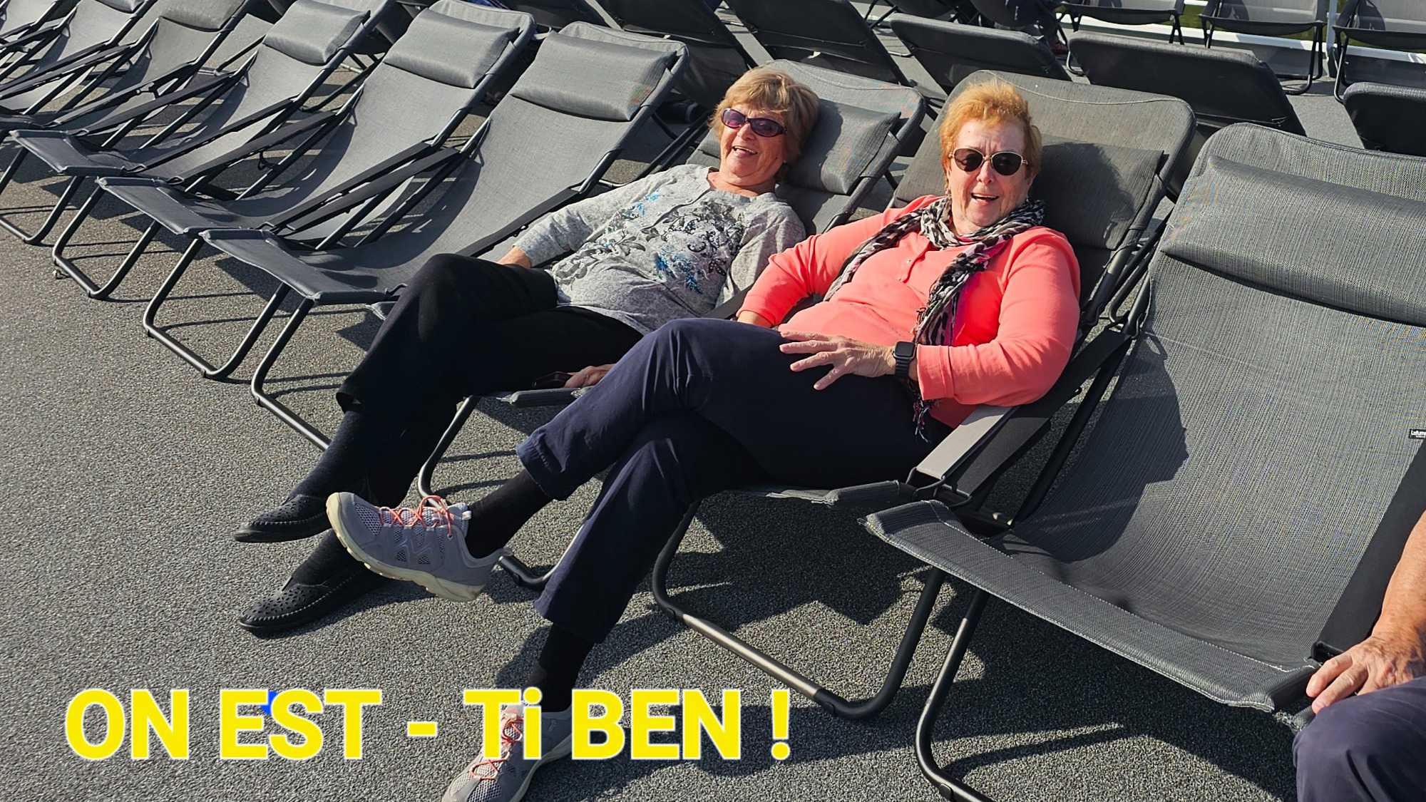 les amis semblent déjà s' adapter a une routine de croisière: ça arrive tard pour le petit déjeuner.. ça fait son affaire de prétendre que le petit déjeuner se termine à 9h30…..