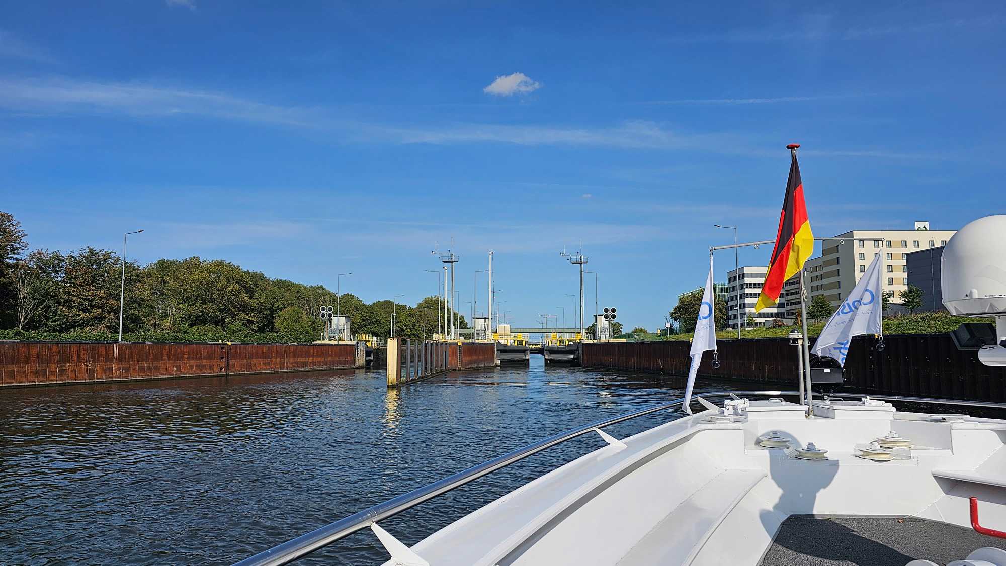 En matinée nous naviguons paisiblement sur le Rhin, entre France et Allemagne.