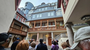 Notre excursion à Francfort débute à 17h30 par un parcours piétonnier du centre ville, de l’ancienne nouvelle ville de Frankfort. Nous sommes passés devant la cathédrale impériale qui domine le centre-ville du haut de sa tour de 95 mètres. Nous avons pu découvrir le cœur de la vieille-nouvelle ville de Francfort et le Römerberg, qui a une histoire qui remonte jusqu'à l'époque des Hohenstaufen. Rappelons que Frankfort a été presque complètement détruite par les bombardements,ente de la 2e guerre mondiale. La ville a fait beaucoup d' efforts pour restaurer le plus possible le centre-ville original. le conseil municipal a acheté les maisons entourant la place pour reconstruire les résidences le plus fidèlement possible comme elles l’étaient initialement. Il est surprenant d' apprendre que certains quartiers du centre ville ont été reconstruits et terminés en 2018.