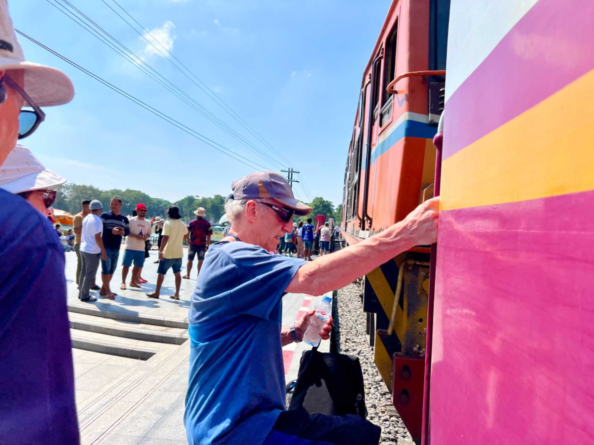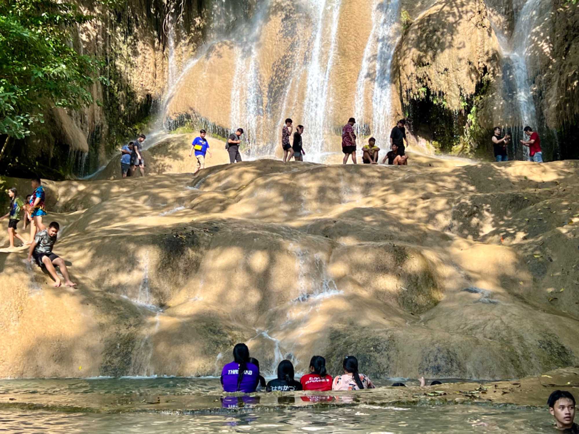 Une fois rassasiés, nous repartirons cette fois vers notre hôtel. Il fait chaud et un repos sera bien mérité. En arrivant à l'hôtel, cinq d'entre nous déciderons d'aller se baigner, je devrais plutôt dire se laisser flotter, dériver, dans le courant de la rivière Kwaï devant notre hôtel. L'eau est bonne et le moment magique. C'est tellement agréable et rafaîchissant que nous ferons une deuxième descente et gagnerons trois autres voyageurs. Plaisir et rires assurés. On emmagasine ce fort moment dans nos mémoires. Juste wow!