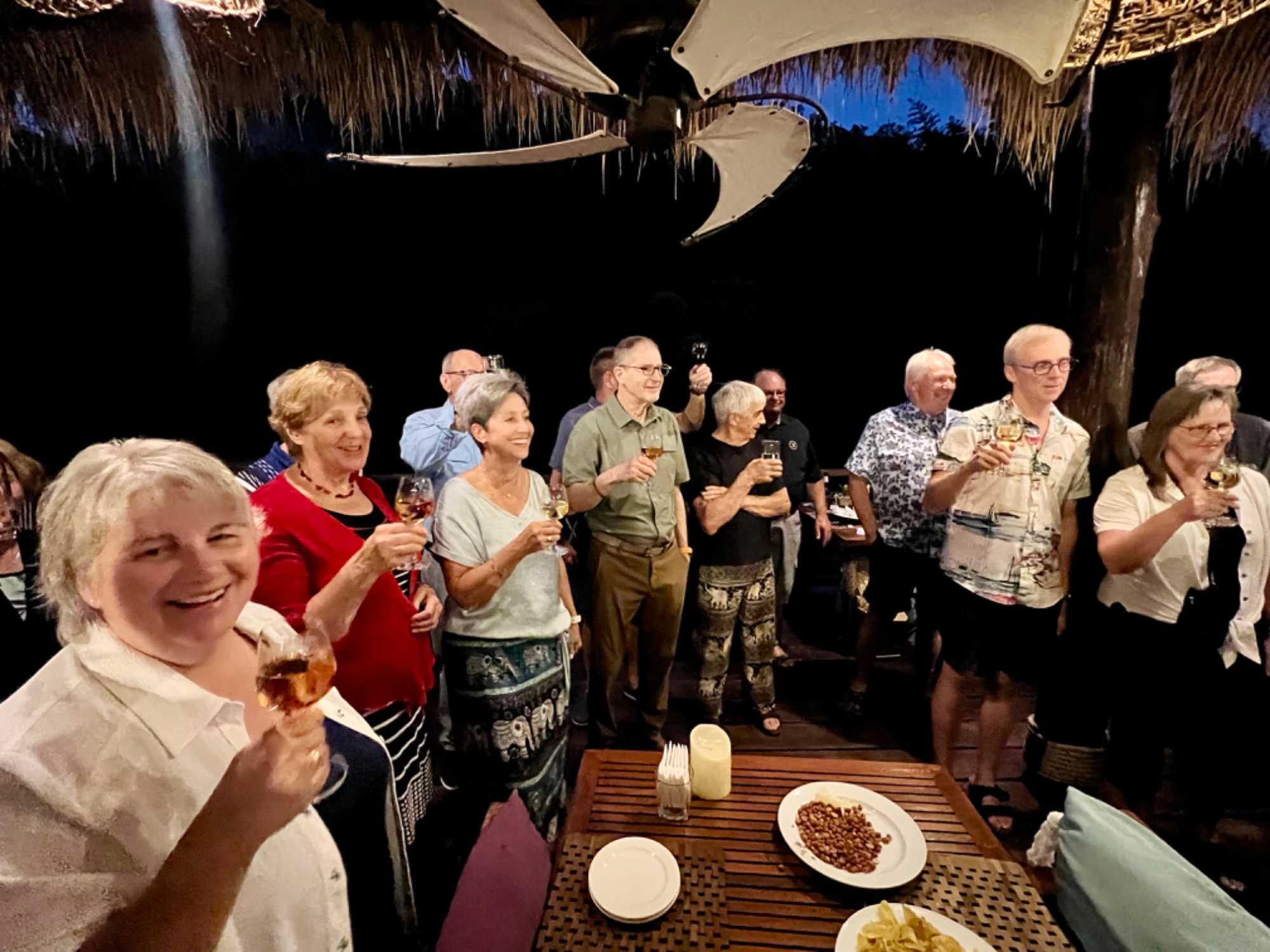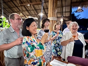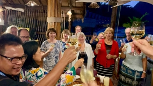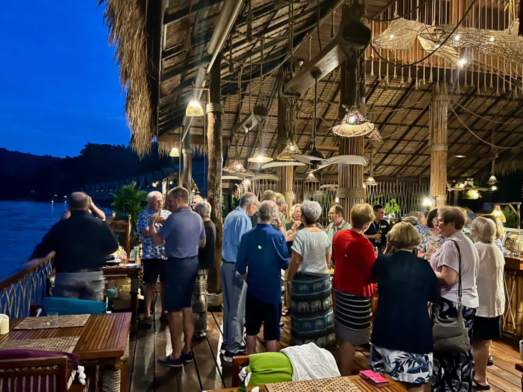 Vers les 18h00, Lek et Supot, nous inviterons à prendre l'apéro sur le bord de la rivière tous ensemble. La chimie du groupe est vraiment agréable et l'atmosphère détendue. C'est facile et pas compliqué. Les voyageurs sont de bonne humeur et heureux de leur voyage. De surpise en surprise ils sont éblouis. Nous avons beaucoup de plaisir tous ensemble. Merci à vous belle gang de l Thaïlande d'exister et de faire de ce voyage une différence. Tous avec vos couleurs vous faite de ce voyage une réussite aussi.