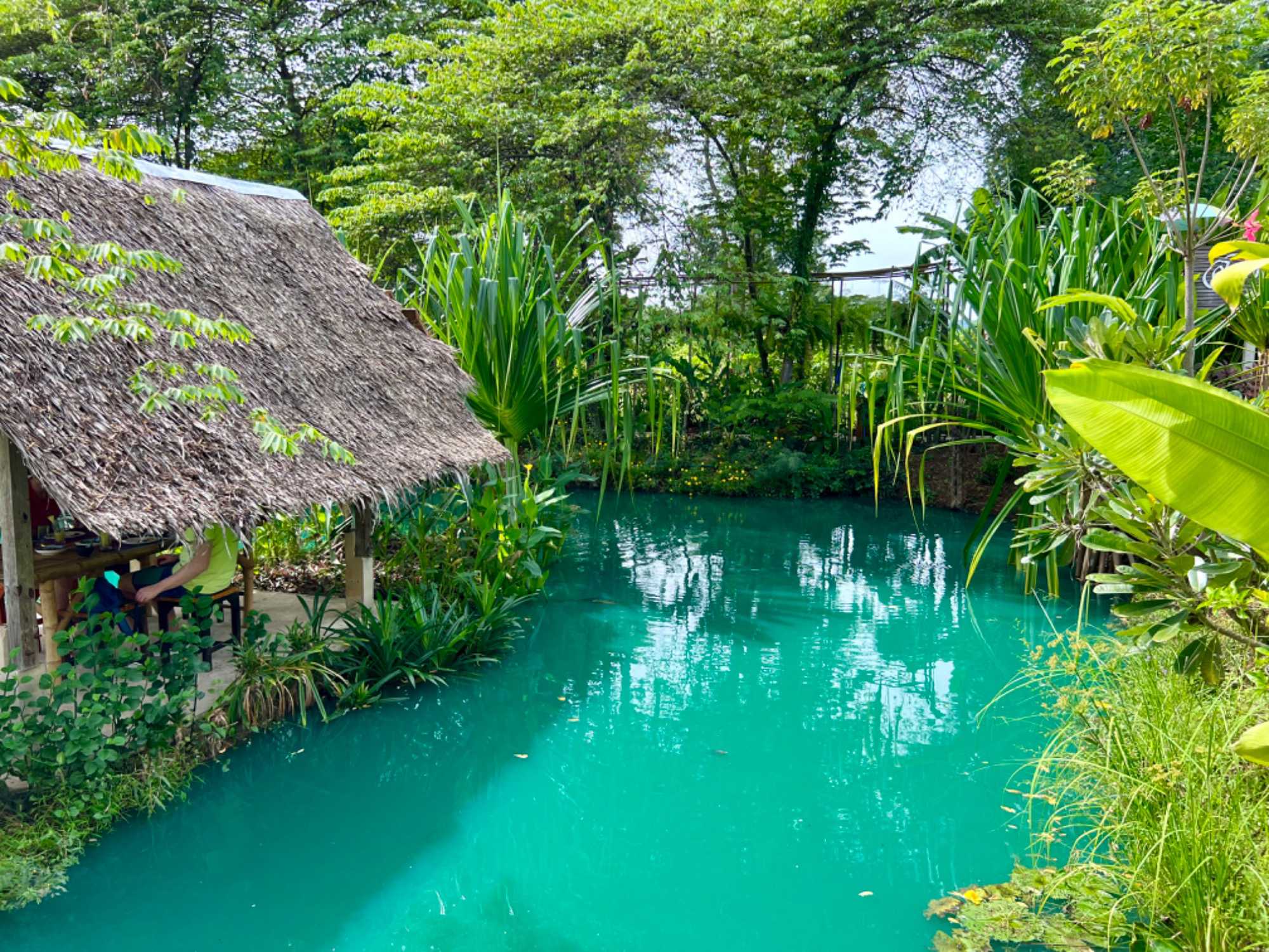Nous prenons notre dîner à Chainat ce midi, dans un restaurant en plein-air. Ce lieu est tout simplement magnifique. Des étangs d'eau turquoise partout autour de nous, plusieurs endroits isolés pour y manger éloigner les un des autres ce qui veut donc dire que nous sommes seuls sur notre plate-forme. Le repas est encore excellent et comme dessert, nous avons droit à notre super riz collant sucré accompagné de quartiers de mangues fraîches que Lek a acheté au marché plus tôt. Un régal ce dessert. Merci Leki d'amour!