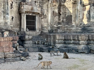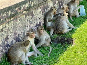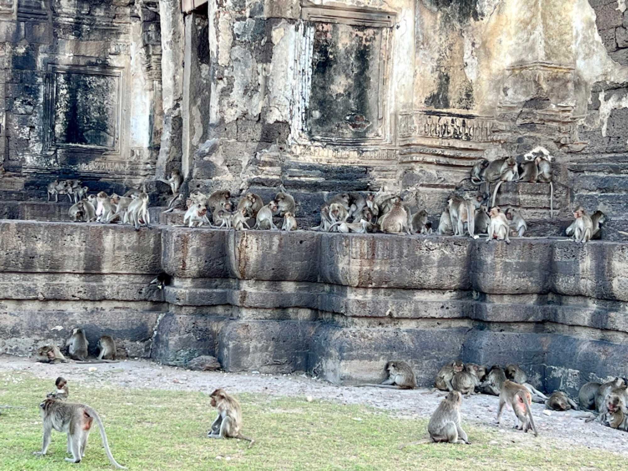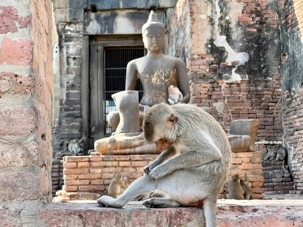 Nous nous dirigeons ensuite vers Lopburi, sur la rive gauche de la Choa-Pra-Ya. Un étrange phénomène que les habitants de Lopburi acceptent est la cohabitation avec les singes. Le temple Prang Sam Yod abritent d’ailleurs de nombreux singes. Nous visitons, mais surtout photographions des singes, car il y en a partout. Plusieurs ont de bien drôles de mimiques. Très impresionnant à voir ces petites bêtes mais attention aux lunettes car...ils aiment vraiment ça. On ne restera pas très longtemps car la chaleur se fait sentir...OUFFF!!! Très chaude, cette journée…