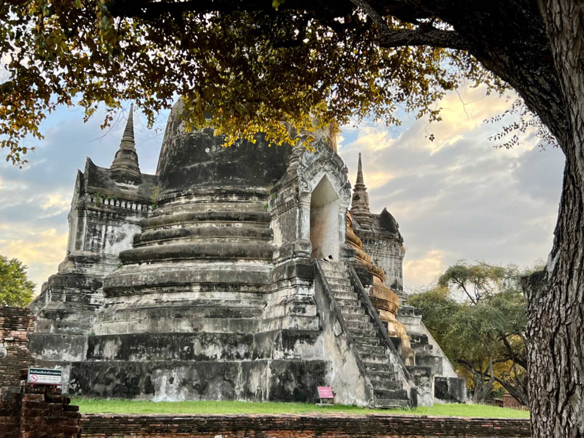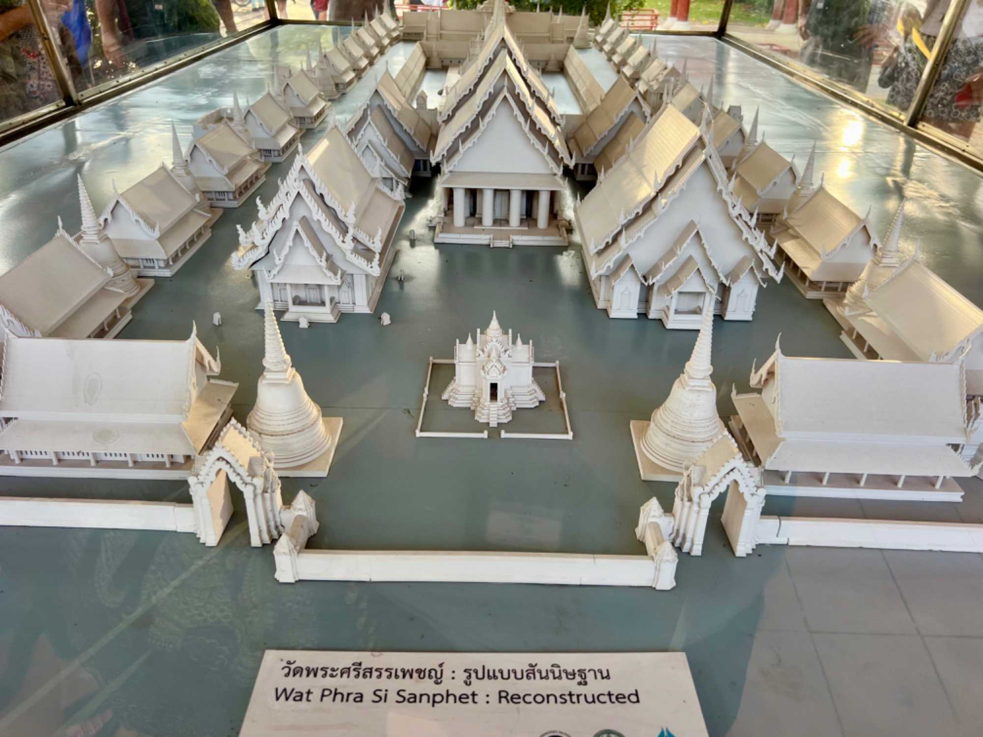 Ce temple est sans doute le plus imposant d’Ayutthaya avec ses 3 grands chedis centraux. Il fut construit au XV e siècle sous le règne du roi Borom Traï Lokanat. Le site a ensuite été embelli par les successeurs de ce souverain, notamment par Ramathibodi II. Au début du XVI e siècle, ce dernier ordonna de placer une image de Bouddha recouverte de plaques d’or qu’il nomma « Phra Si Sanphet » d’où le temple tire son nom.