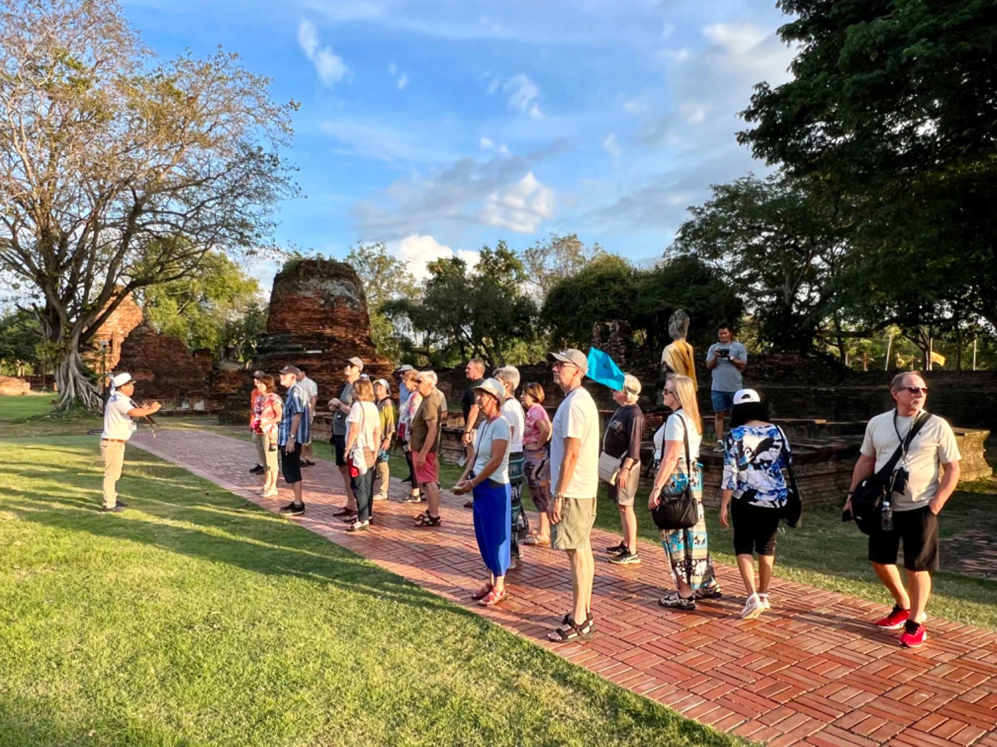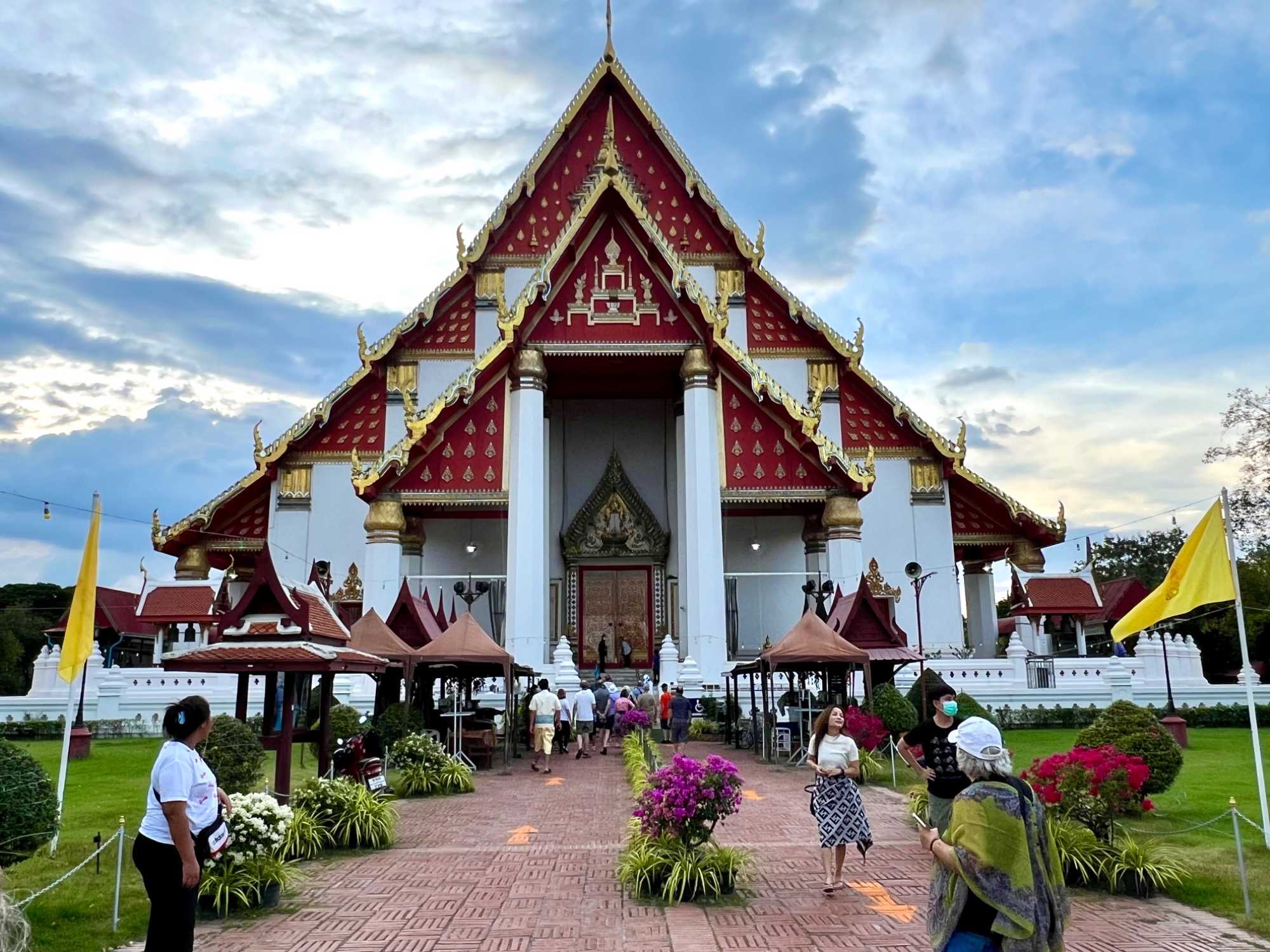 En route vers Ayutthaya. Cette ville fût la capitale des Thaïlandais pendant 417 ans et reste aujourd’hui une des principales attractions touristiques du pays. De nombreux monuments et vestiges de l’époque peuvent être visités dans cette cité fondée en 1350. Nous navons déambulé à travers le temple Wat Pha-Sri-SanPhet, le temple le plus important d’Ayutthaya. Malheureusement nous n'avons pu entrer dans un des temples car il venait tout juste de fermer mais qu'à cela ne tienne, la visite fut tout de même très instructive et enrichissante, il fait très chaud et il se fait tard. Direction notre hôtel.