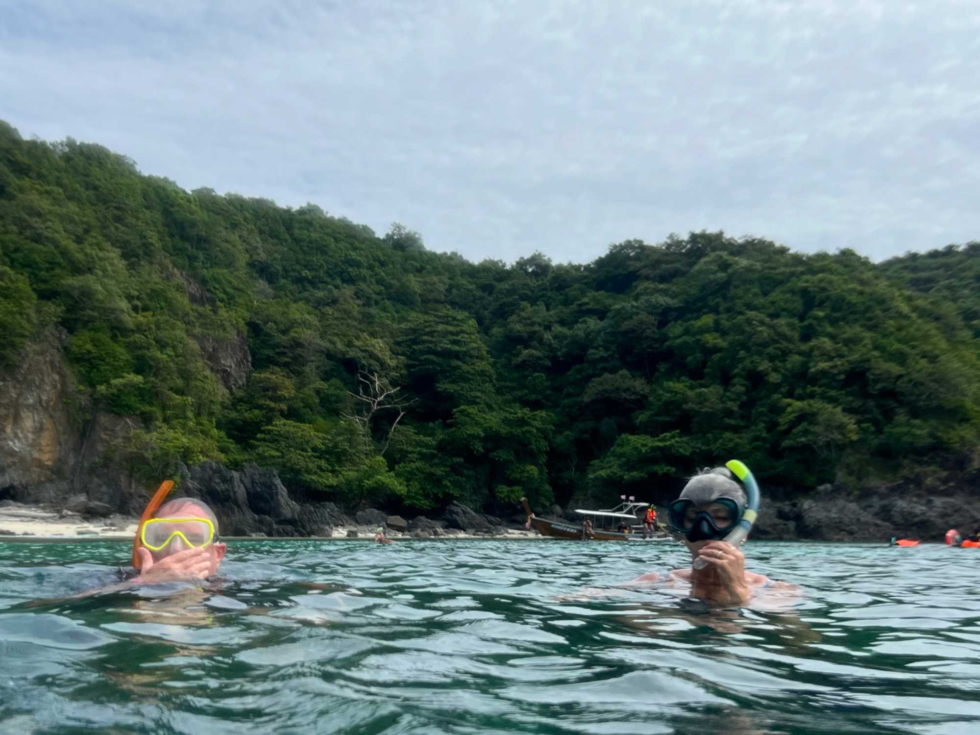 Vers les 8h30, on est plusieurs à avoir décidé hier d'aller plonger en apnée avec une équipe de GO du club med. Encadement très sécuritaire. On se présente donc au comptoir près de la plage, pour aller récupérer nos palmes et tuba. Généralement le bateau part de la plage juste en face, mais on a appris plus tôt ce matin, que le roi et la reine arriveront dans la baie juste en face du club et qu'il nous sera donc impossible de partir de là. Toute une sécurité entoure cet évènement. Lucie et Sylvain auront même la chance d'avoir connaissance de leur arrivée par bateau. Comme irréel tout ça. C'est quelque chose. Nous quitterons donc par voie terrestre, en autobus, pour aller à la Chalong Bay Pier, une marina un peu plus loin. Notre bateau étant déjà accosté, nous partons tous vers le large pour 45 minutes afin de rejoindre une petite baie là où il y a des coraux et de magnifiques poissons. Nous explorerons les fonds marins pendant environ 30 minutes et ce sera le retour à la marina. Toujours plaisant de voir ce qui bouge et vit sous l'eau. On a fait de belles découvertes.