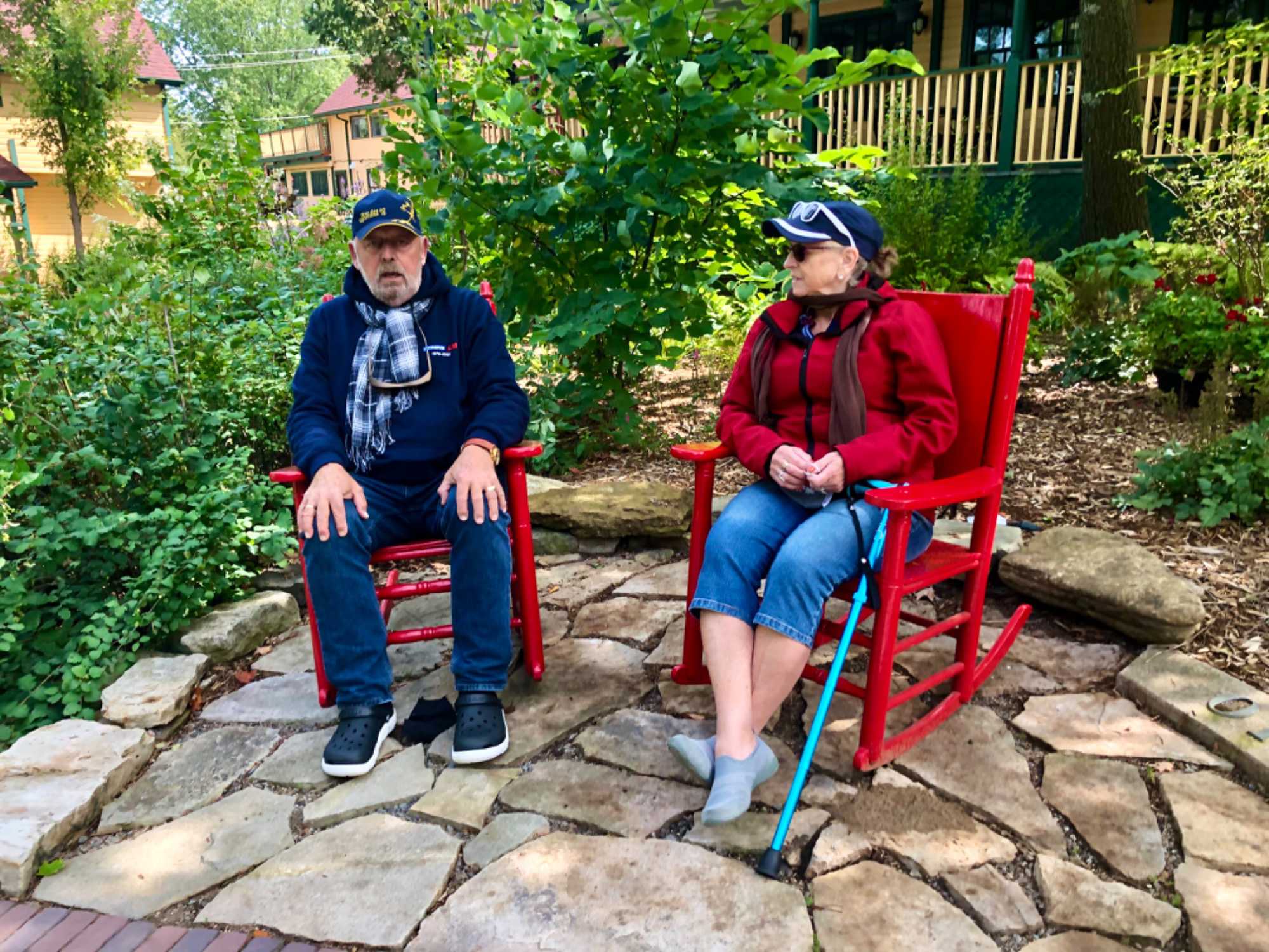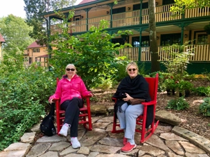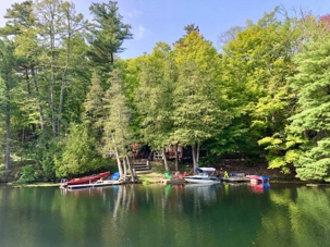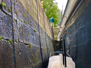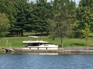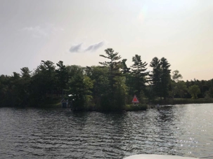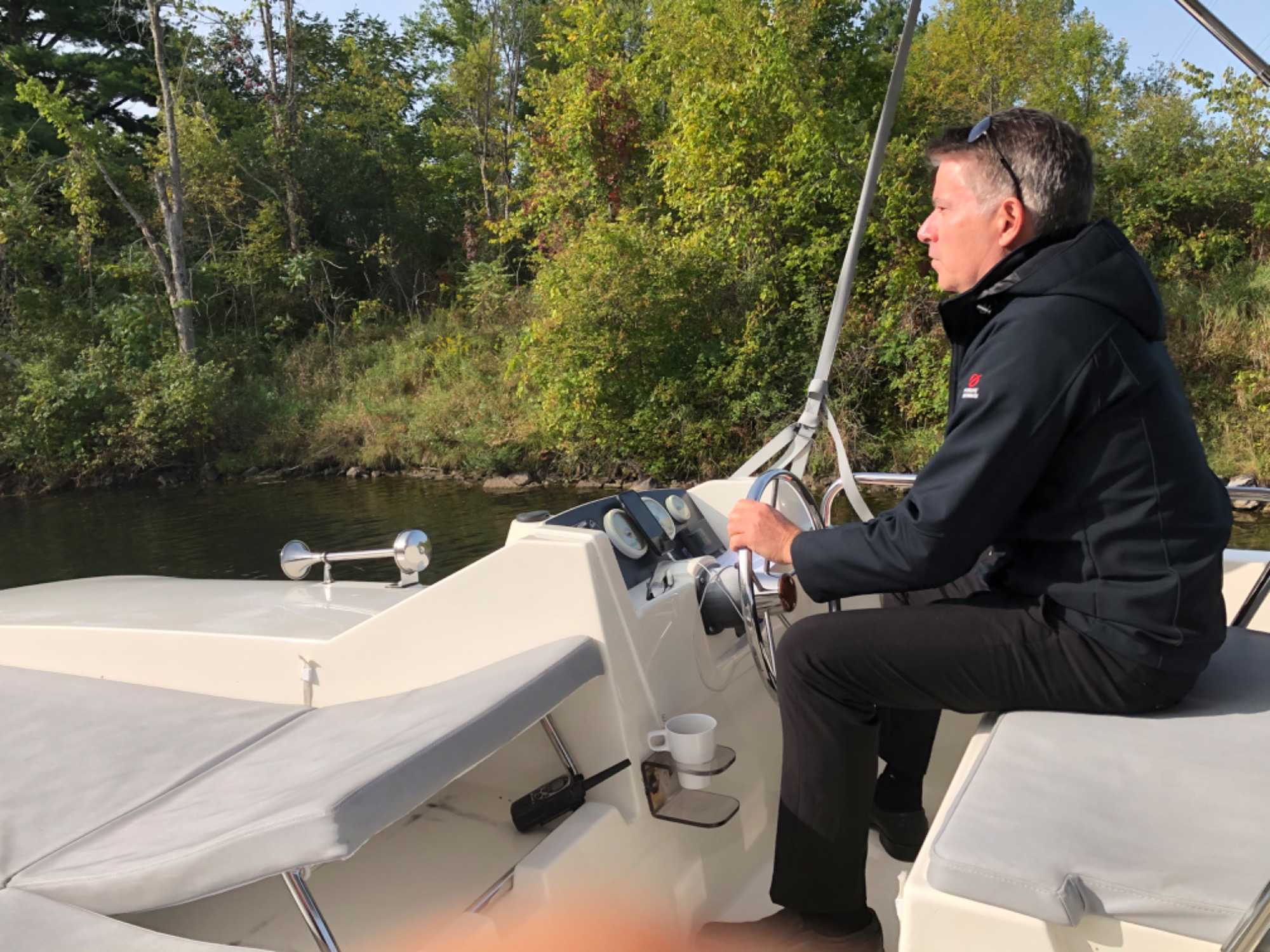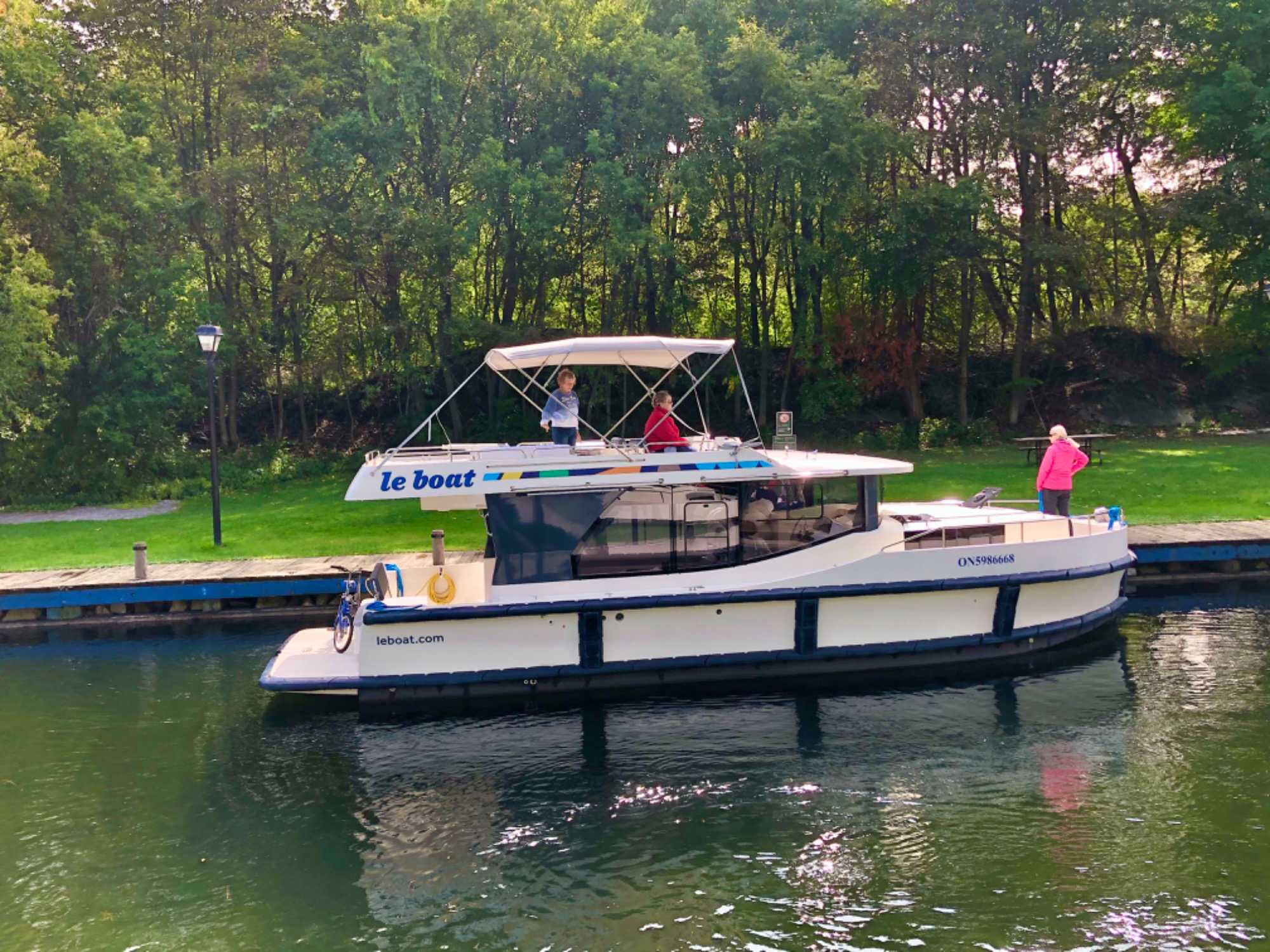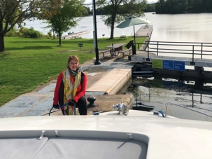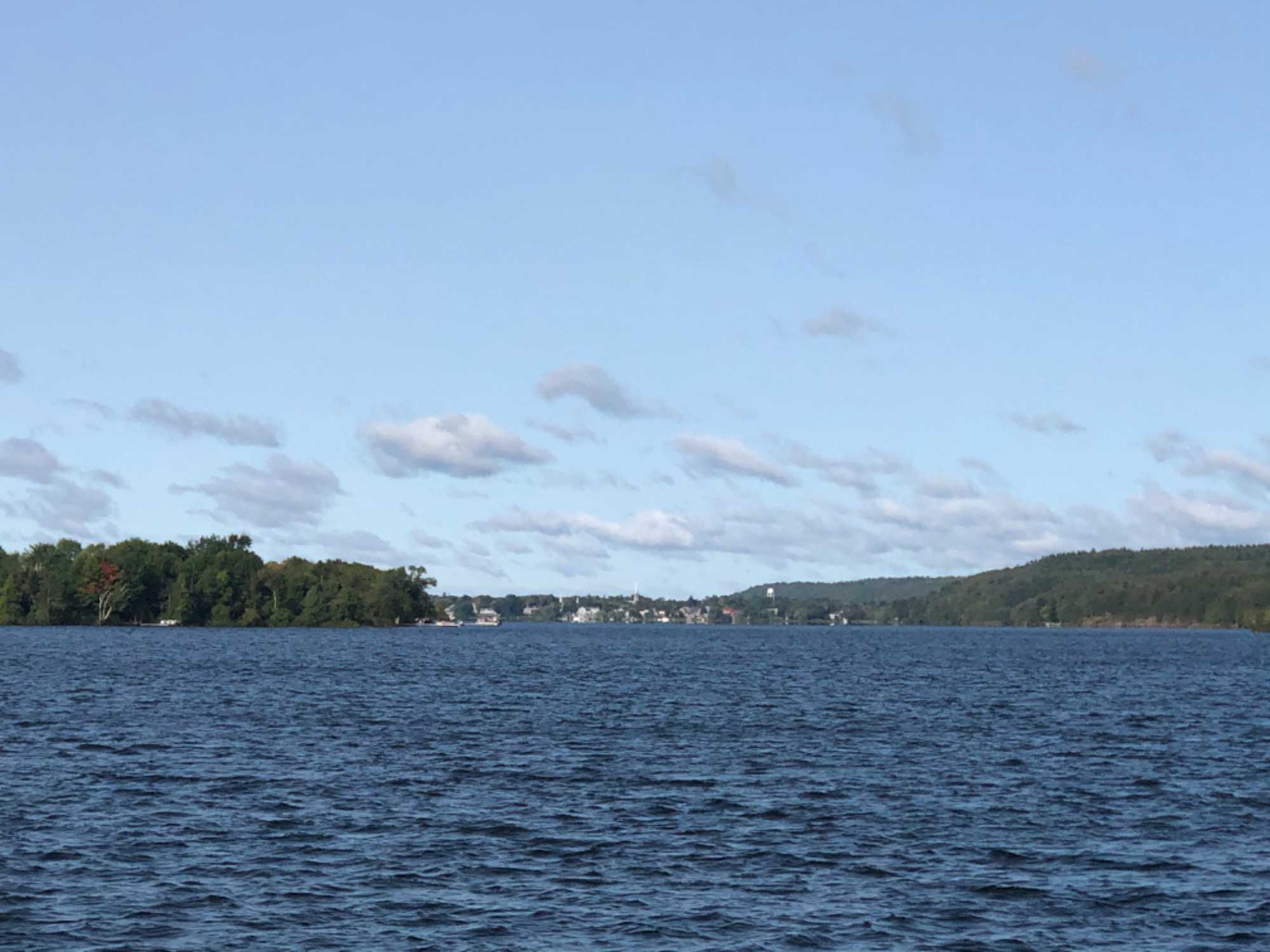 Nous quittons donc après avoir pris notre petit déjeuner dans chacun de nos navires et nous voilà prêts pour le départ de la journée. Bon les bouées rouges sont de quel côtés donc??? Et on doit vraiment y penser vite car on ne veut surtout pas faire de gaffes et se retrouver dans un endroit pour s’enliser ou pire frapper des roches…. La navigation est bien expliquée et Christian a sur son cellulaire le tracé du canal à suivre via un GPS c’est assez important puisque nous sommes le navire de tête. Les cartes marines sont bien faites donc tout se déroule en douceur. Que c’est beau aujourd’hui! Les paysages et le canal à suivre nous fait naviguer dans de jolis passages dont certains sont bien étroits. Mais comme c’est agréable de serpenter et de juste suivre les bouées. Nous filons sur le Rideau tout tranquillement car souvent la profondeur du canal est de seulement 5 pieds et nous avons un tirant d’eau de 3 pieds. Nous arrivons vers 11h30 à l’écluse de Chaffey ou nous somme attendus par David pour notre lunch à un endroit iconique de la région, le restaurant du Opinicon Resort. Qu’il est beau cet hôtel datant de plus de 200 ans! Oui tout un héritage historique que nous découvrons à ce resort.