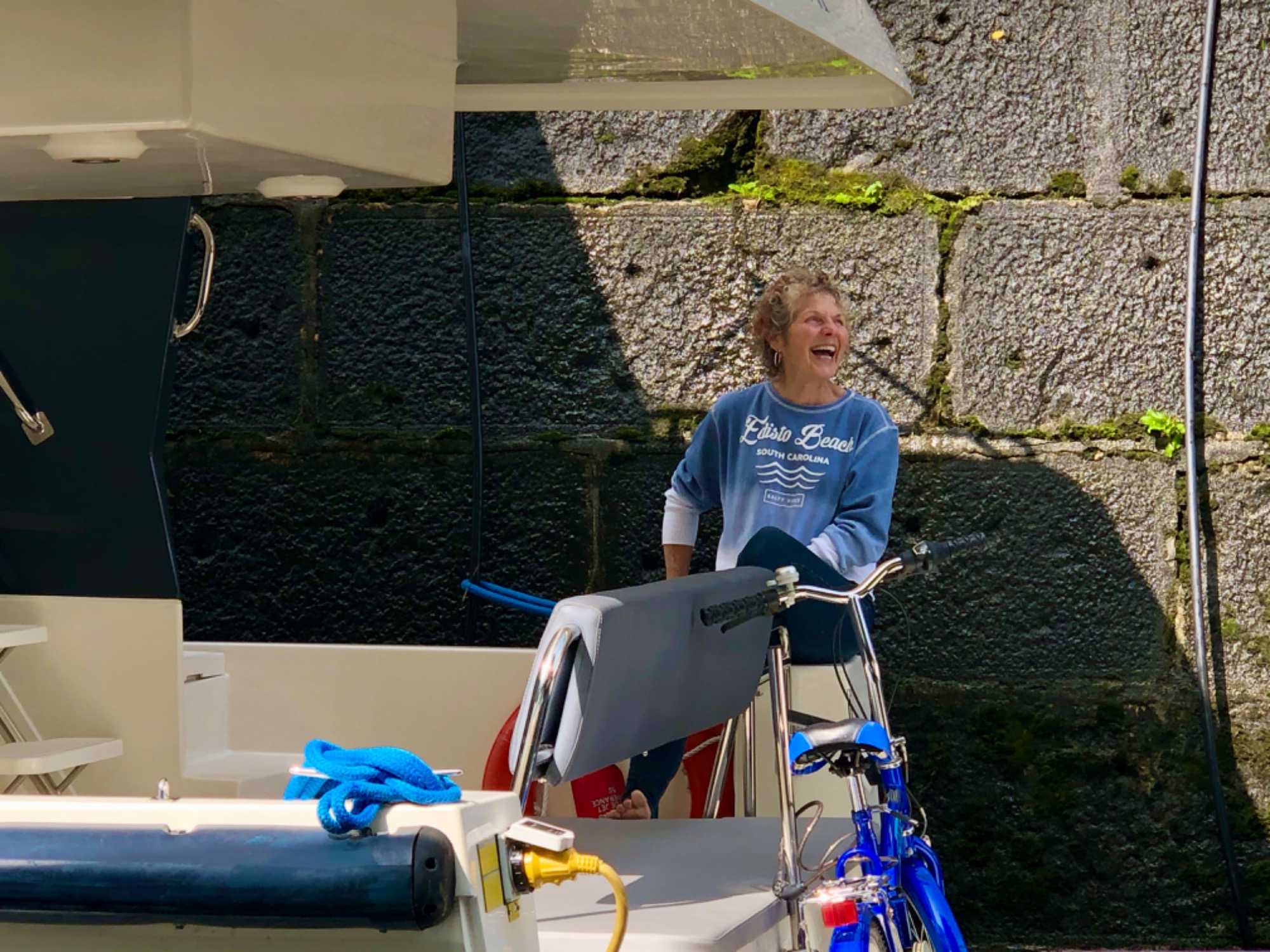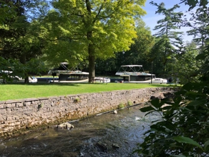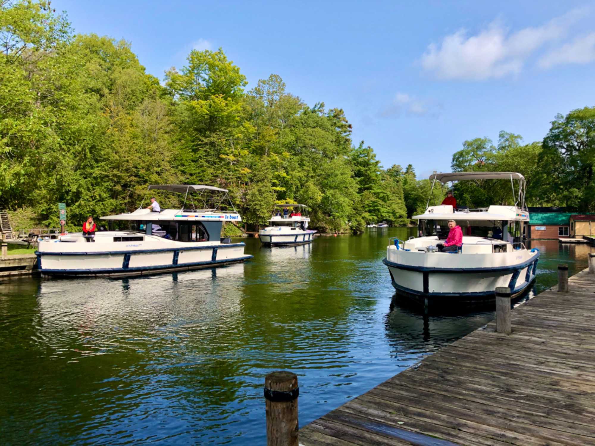 La Covid par contre à bien ralenti l’infrastructure car le restaurant a ouvert pour notre groupe. David avait réservé ce restaurant il y a bien longtemps et ils ont fait le service de ce lunch juste pour nous dans une superbe salle à manger. Nous sommes tous repartis avec un doggy bag…. car oui, tout était trop copieux. Un excellent repas et en après midi nous avions la chance d’avoir avec nous une voyageuse qui avait sa petite sœur propriétaire du moulin de Chaffey. Normalement le moulin ouvre pour les expositions d’œuvres de peintres de la région mais en temps de Covid il ne serait pas ouvert. Céline, la sœur de Louise nous reçoit avec grand plaisir et nous partage avec son conjoint, leur passion d’être les propriétaires de ce site historique de plus de 200 ans. Ils nous en parlent et nous le font visiter avec beaucoup de plaisir. Nous sommes privilégiées de pouvoir y entrer. Merci Louise. Nos bateaux sont en plus, presque amarrés dans leur cour! Une belle journée de détente et plusieurs en profitent pour faire du vélo, aller acheter de petites choses au magasin général de la place. Car c’est moins qu’un village ici c’est plus une mini communauté.