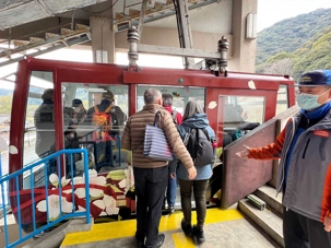 C’est la première fois de ma vie de grande voyageuse que je suis si près du comptoir d’enregistrement pour notre prochain vol! En effet, quelques 20 pas et nous passons de l’hôtel à la file du comptoir de Air Nippon. Et comme les japonais sont très attentionnés, l’hôtesse nous ouvre un comptoir que pour notre groupe. Ils sont vraiment aux petits soins. Nous avons alors le bonheur de voyager avec la compagnie japonaise All Nippon Airways, et de goûter à leur sens extrême d’hospitalité. Notre vol fut bref, à peine 1h15. Nous volons vers l’ouest du pays et nous reviendrons vers l’est avec différents moyens de transports (bus et train).