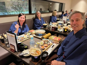 Après une courte visite du musée adjacent, nous reprenons la route pour nous rendre à notre dernier hébergement de notre voyage, un superbe ryokan, l’hôtel Susuki no hara ichinoyu, pour une nuit. Un ryokan est une auberge traditionnelle et typique du Japon. Il en existe environ 70 000. Les ryokan sont souvent constitués de matériaux traditionnels: bois, bambou, papier de riz. D'autres utilisent des matériaux plus modernes tout en gardant l'esthétisme japonais. Les chambres sont de style japonais, munies de cloisons coulissantes et d’une table basse au milieu de la pièce. Le sol est généralement recouvert de tatamis constitués de paille de riz, les clients dorment sur un futon. Les ryokan sont également pourvus de bains chauds. L’eau provient parfois de sources thermales situées sous le ryokan : on parle alors d’onsen. Les bains sont communs, avec des plages de temps réservées aux femmes et d'autres aux hommes. Nous, nous avons la chance d’avoir notre onsen privé, dans notre chambre.