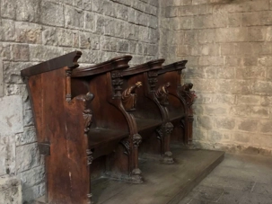 Nous nous imprégnons de Barcelone, découvrons ses ruelles étroites, l’église Sainte-Marie de la Mer, la Cathédrale de Barcelone, admirons les innombrables gargouilles. Miquel nous rappelle que Barcelone a été fondée par les Romains et nous mène aux fondations du temple d’Auguste. C’est très impressionnant.