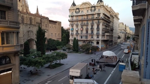 Il faisait 21 degrés ce matin, soleil radieux. Vous savez, hier lorsque nous sommes revenus à l’hôtel, certain se demandaient quel serait l’état des rues au réveil parce qu’ils en ont fait péter des pétards hier croyez-moi, les carcasses jonchaient les rues. Eh bien, ils ont nettoyé après la parade jusqu’à tard dans la nuit. Il faut avouer que la ville de Barcelone est très propre. Ce matin, la rue s’est transformée comme par magie : jeux pour enfants, scènes de spectacle, plantes, ils ont même installés des arbres matures, avec une grue! Caroline les a pris en photo. Nous sommes dimanche alors la fête sera réservée aux familles.
