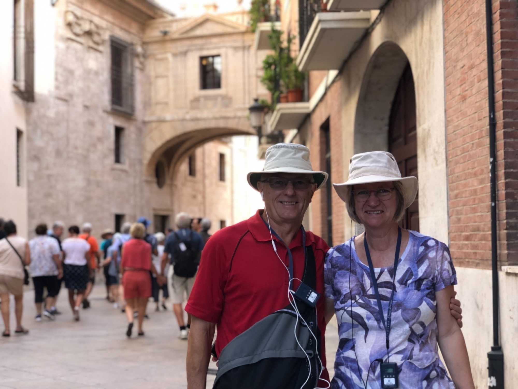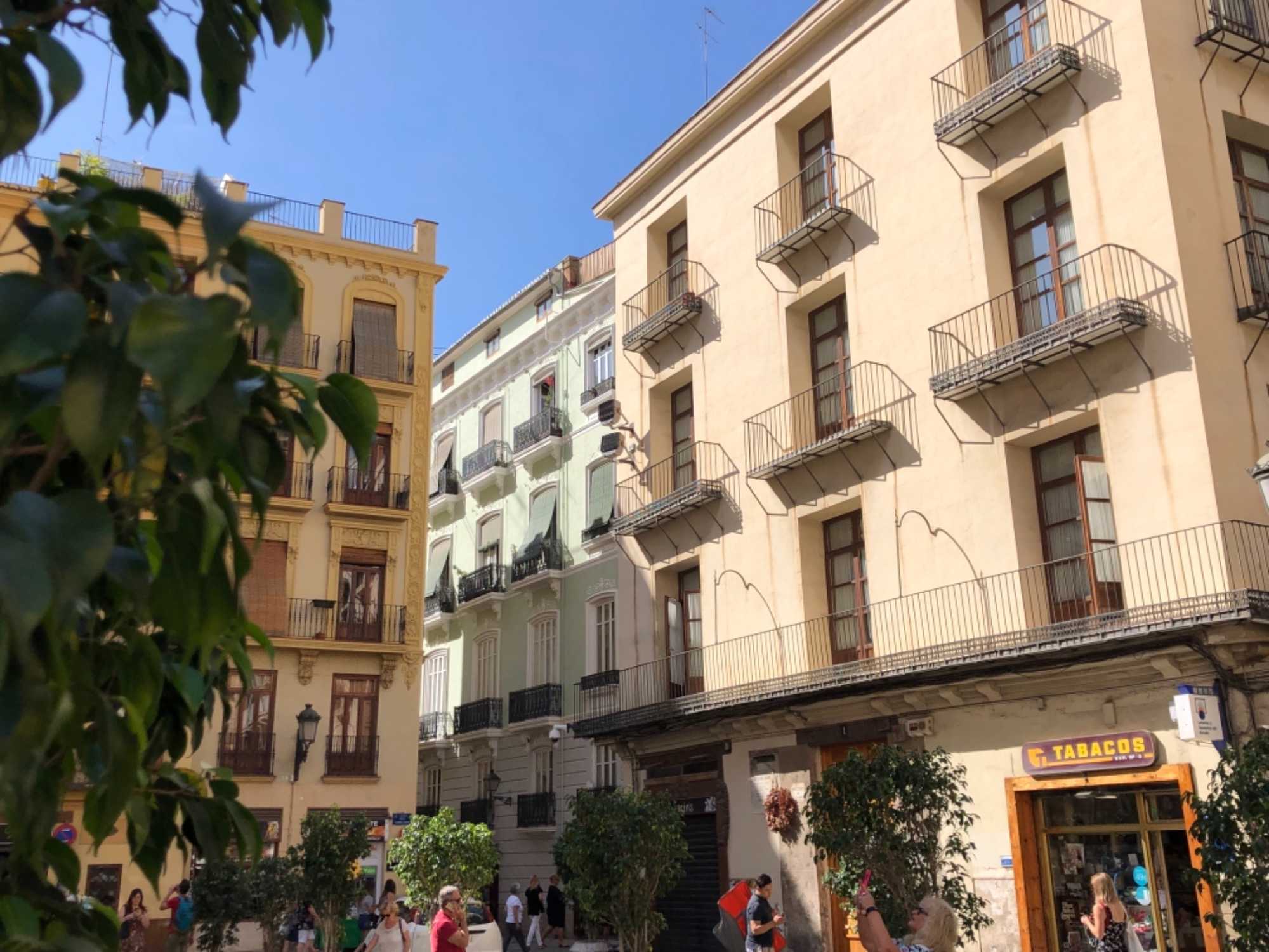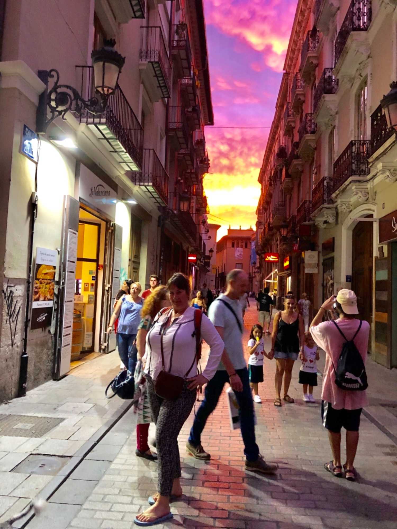 Aux 8e et 13e siècle, Valence était un royaume arabe et paradoxalement, nous ne trouvons aucune trace de la présence arabe en ces lieux. Nous traversons la Gran Via (grande rue). Les murailles, datant du 14e siècle, ont été détruites en 1850 afin de faire place au développement industriel de la ville. Nous passons devant la place de Taureaux et la gare du nord. La ville est très verte et fleurie.