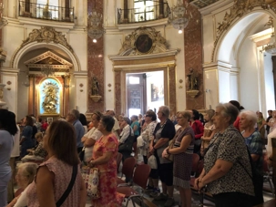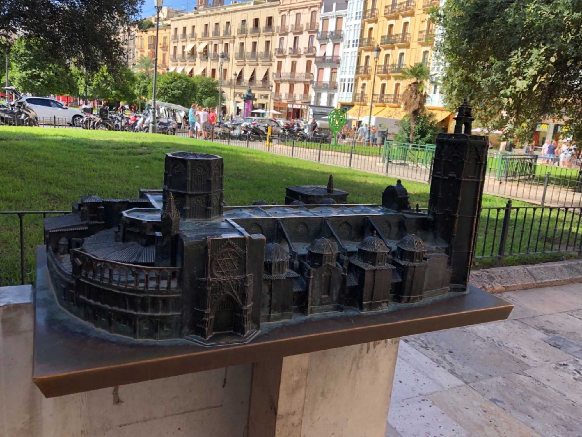 La ville était, jusqu’en 1957, traversée par un fleuve, la Túria. Notre guide nous apprend qu’il est fréquent que le fleuve déborde dû aux pluies torentielles qui s’abbattent, aux 150 ans, en septembre c’est pourquoi les autorités de la ville ont décidé de construire un barrage en amont du fleuve. Ils ont tranformé son lit en jardin public long de 25 kilomètres, traversé par 18 ponts. Le projet prévoyait également la construction d’une autoroute, d’installations sportives, du Palais de la musique, ce fut la première construction, et de pistes cyclables. Nous avons visité la cathédrale Sainte-Marie de Valence, le musée national de la céramique et plusieurs quartiers du centre historique. Amparõ nous a fait connaître l’immense marché public de la ville.