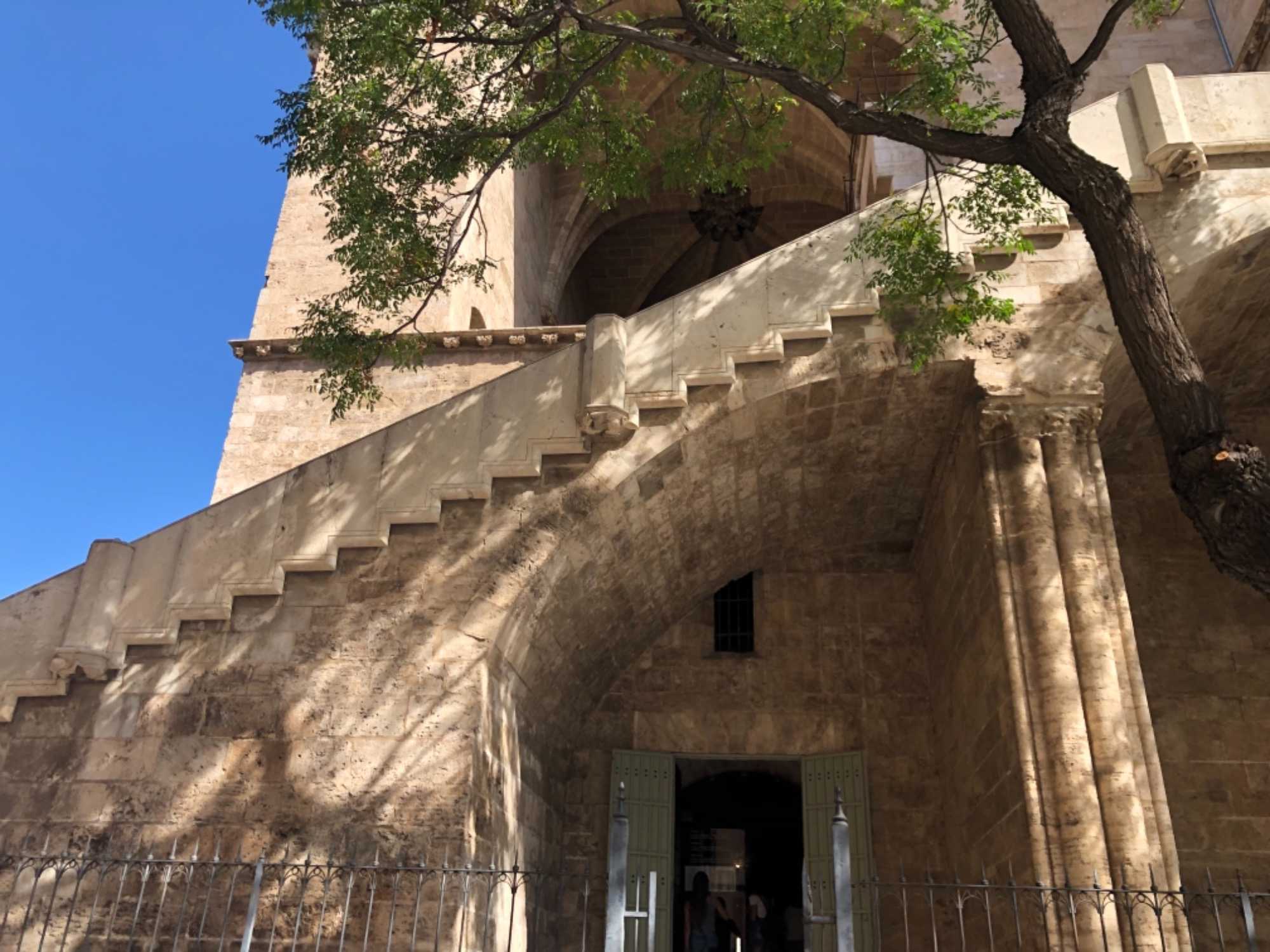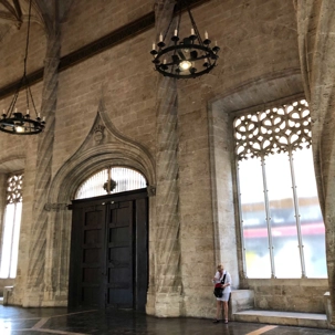 Notre guide locale Amparõ nous a rejoint à l’hôtel. Nous avons débuté la visite guidée de Valence par un tour panoramique suivi d’une balade à pied au cœur de son centre historique, qui est loin de la mer, ce qui est rare pour un centre historique. Cela nous a permis d’apprécier les contrastes de cette ville. Nous avons vu, entre autres, l’ancien marché de soie, La Lonja. La lonja ou Loge de la soie ou Loge des marchands, est une place de commerce construite au XVe siècle. Elle représente la puissance économique de la cité à la fin de ce siècle. De style gothique valencien, la cité fut conçue comme un temple du commerce et déclarée patrimoine de l’Humanité par l’Unesco en 1996.