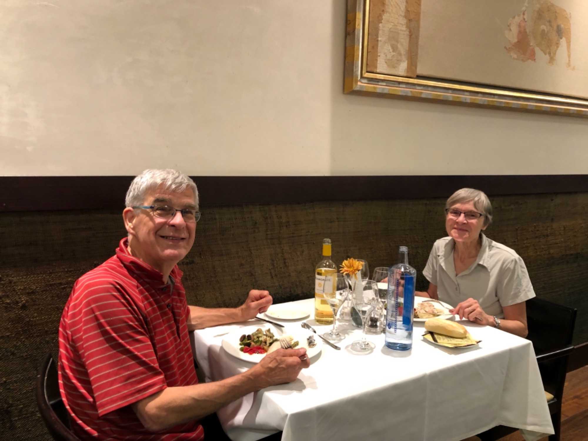 Après 8 km de marche, nous partons en direction de notre destination finale, pour aujourd’hui, Séville. Nous arrivons, à près de 32 degrés, en fin de journée. On s’installe et on se retrouve au restaurant de l’hôtel, le NH Collection, pour notre souper de groupe : entrée de salade verte, poisson et légumes grillés.