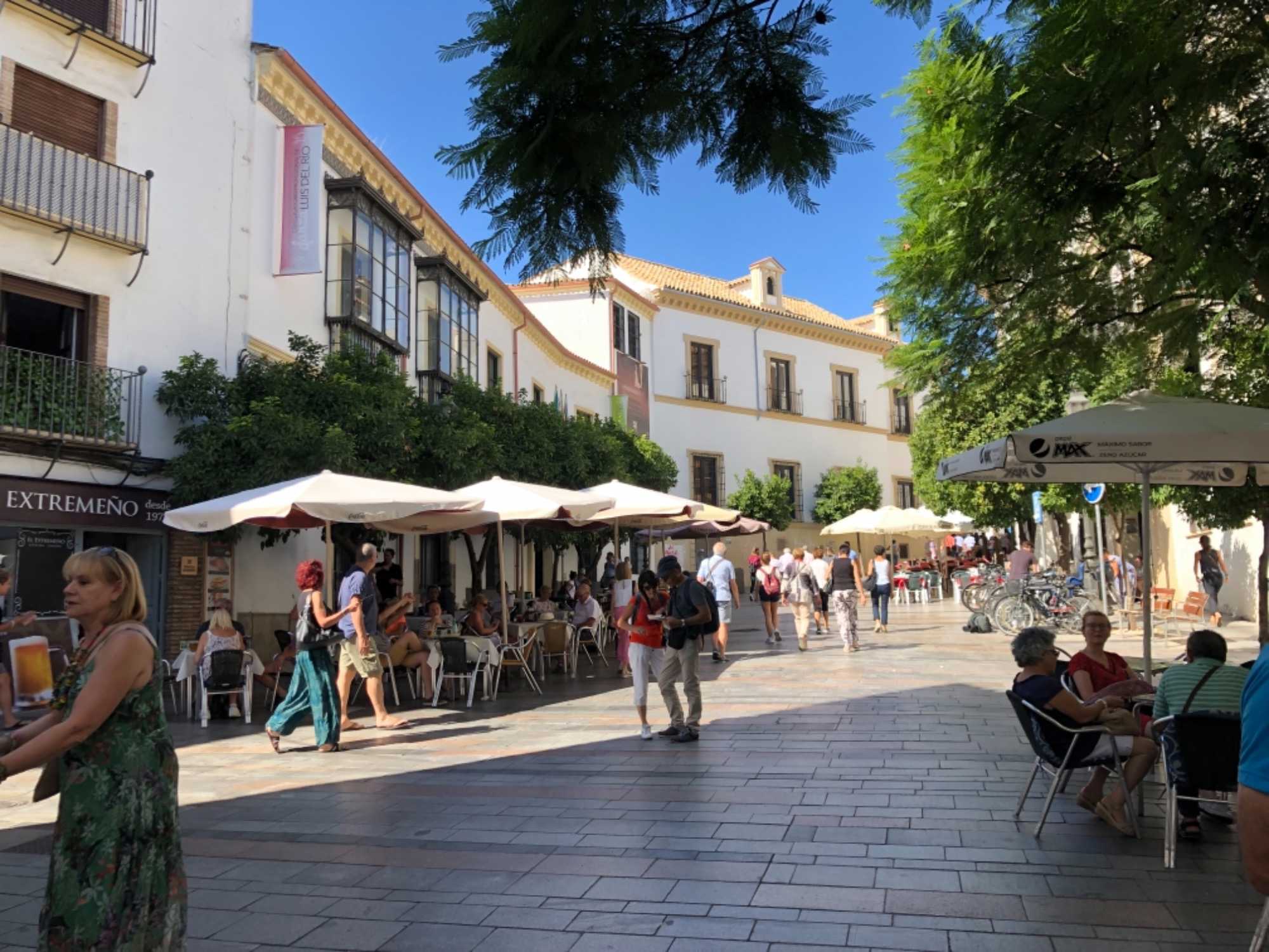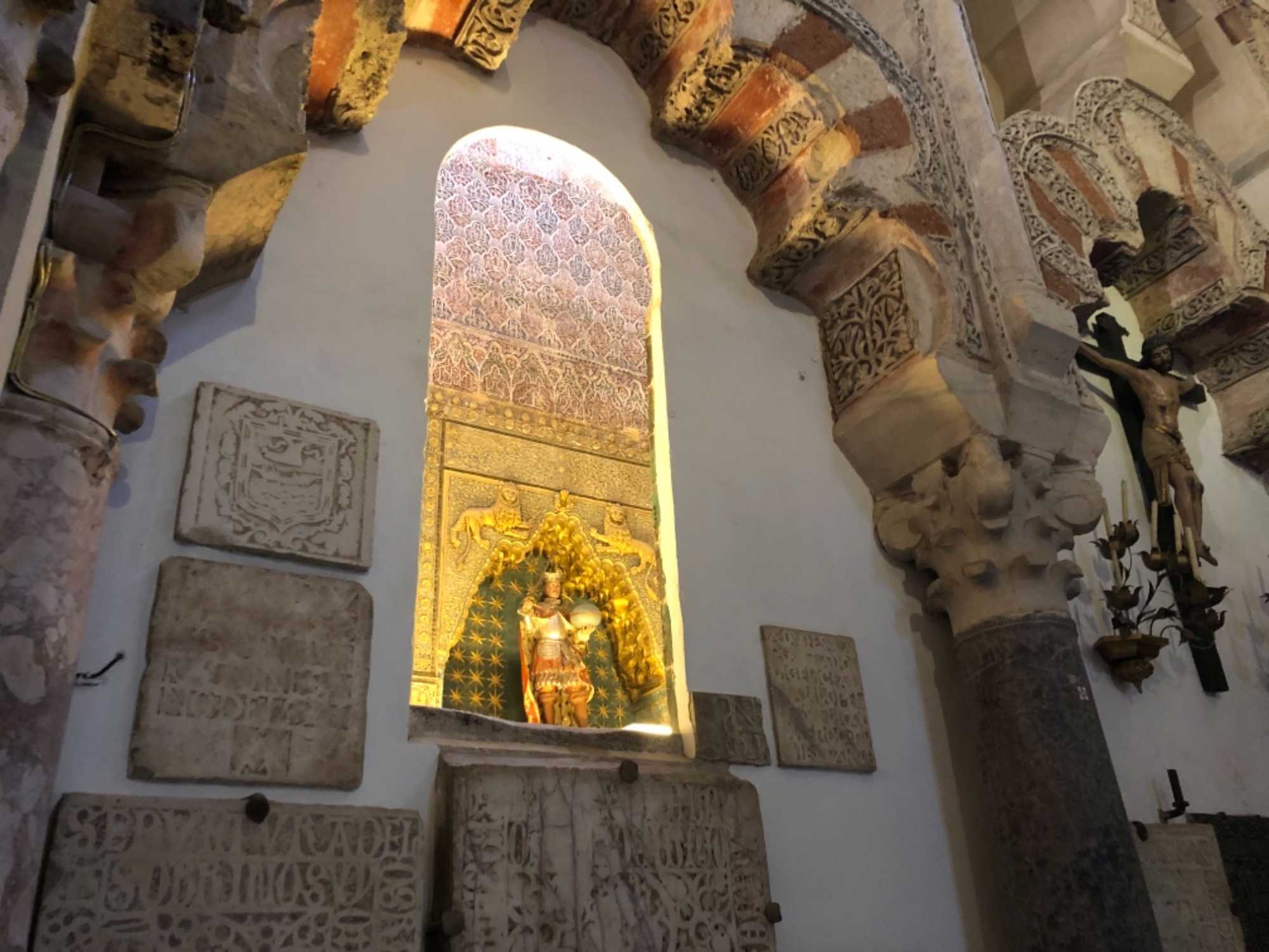 C’est au restaurant Almudaina que nous prenons notre repas du midi : des boulettes de jambon, des canapés de thon en entrée et le cariera, repas traditionnel de Cordoue. En fait, c’est un porc en sauce et le porc, partie de viande prise dans les joues. Cordoue, c’est un ancien quartier juif. On y trouve une chapelle du 15e siècle. L’influence musulmane est très présente. On y apperçoit St-Raphaël, le protecteur de Cordoba ou Cordoue. C’est avec Fernando, notre guide local que nous visitons la vieille ville et la mosquée. Cordoue fut la capitale de l’Andalousie. On y retrouve quelques familles juives. La mosquée, devenue cathédrale est magnifique. Quatre différentes cultures y ont séjourné et on y célèbre encore la messe régulièrement. C’est très impressionnant. À l’origine, 1013 colonnes y ont été installées maintenant, on en retrouve 856. On y trouve également un magnifique ostensoir datant du 16e siècle et pesant 123 kg, en argent et or. C’est un bâtiment immense, Claude et Denis ont fait le calcul : près de 198 500 pi carré.