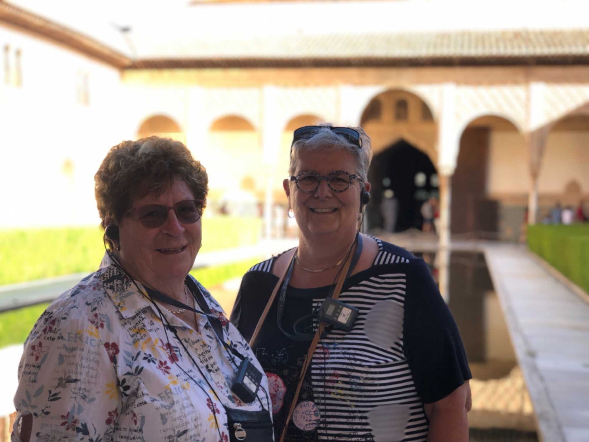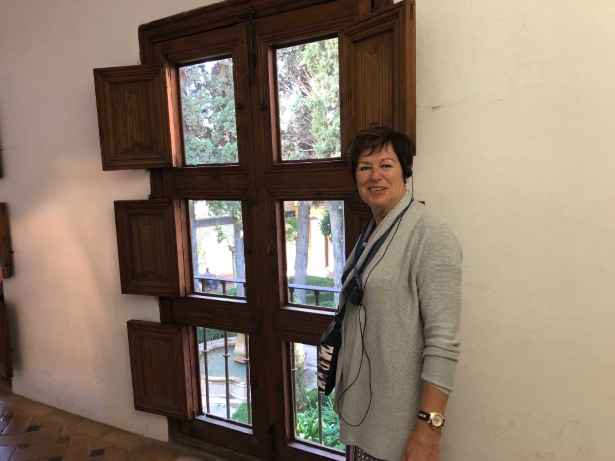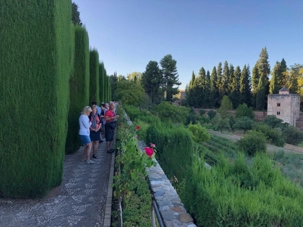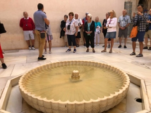 Notre guide Daniel, Dany pour les intimes, nous attendait à l’Alhambra. C’est quoi l’Alhambra, c’est un jardin, c’est un palais, c’est un complexe arabe unique qui symbolise l’apogée de l’art musulman en Europe au 14e siècle. C’est de toute beauté. Nos yeux ne suffisent pas à voir, que dis-je, à admirer la splendeur des jardins et de l’architecture. Daniel nous dresse le portrait de l’histoire des sultans, des princesses, des guerres et des coutumes arabes. Le complexe s’étend sur 121 hectares dont la construction a pris 250 années. On dit qu’il y a plus de 1000 tremblements de terre par mois, le complexe y a survécu. Plus de 8000 visiteurs par jour viennent admirer cette beauté architecturale. Si vous voulez en apprendre plus sur l’Alhambra, vous pouvez lire un roman de Washington Irving, qui vécu dans ce palais en 1829 dont le titre est : Les contes de l’Alhambra. Les pièces sont vides car le dernier sultan qui est venu a tout rapporté avec lui. Vous y trouverez un canal d’irrigation de sept kilomètres qui date du 13e siècle, toujours fonctionnel. Il y a des fontaines et des canaux partout dans le complexe.