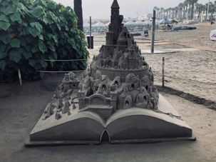 Certains ont pris vers la gauche, vers la marina et d’autres ont pris vers la droite. Il y a un immense trottoir qui longe la côte avec boutiques et restaurants. Je vous ai placé des photos de magnifiques châteaux de sable.