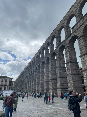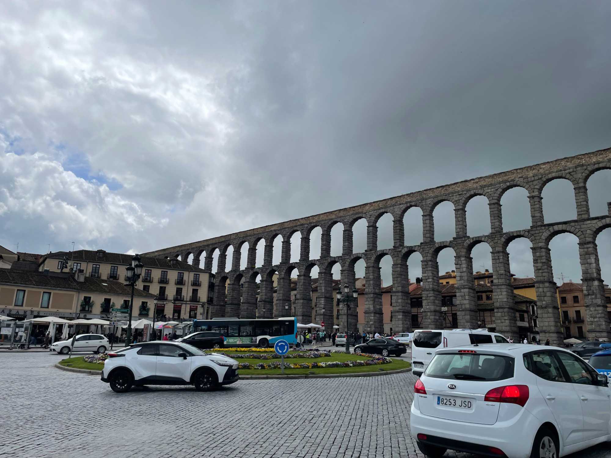 Nous continuons notre découverte par la suite de la ville de Ségovie à pied. Déclarée site du patrimoine mondial par l'UNESCO en 1985. Son passé de peuplement se reflète dans la richesse de son architecture, notamment ses murs médiévaux, ses églises romanes, son ancien palais royal et sa cathédrale gothique. Son emblématique aqueduc romain comprend plus de 160 arches, dont la plupart sont construites dans un granite sans mortier d’origine, et surplombe la Plaza Azoguejo au cœur de la ville.