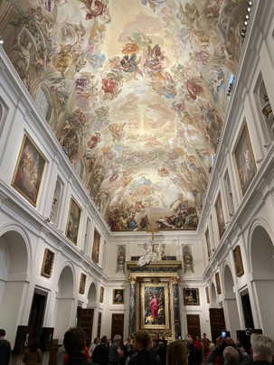 Notre chauffeur nous amène dans un stationnement souterrain pour nous diriger vers notre marche du centre de Madrid. Nous déambulons dans les rues pour retrouver l’extraordinaire Palais Royal, splendeur, beauté et démesure! Également connu sous le nom de palais d’Orient, ce fut la résidence officielle du roi d’Espagne. Il est maintenant utilisé pour des fonctions protocolaires puisque les rois actuels résident maintenant au palais de Zarzuela. De style baroque, sa construction remonte à 1738 par ordre de Philippe V et ne fut achevé qu’en 1764! C’est le plus grand palais royal d’Europe occidentale et l’un des plus grands au monde avec ses 3 418 pièces, ce qui équivaut à presque 2 fois la grandeur du palais de Buckingham.!