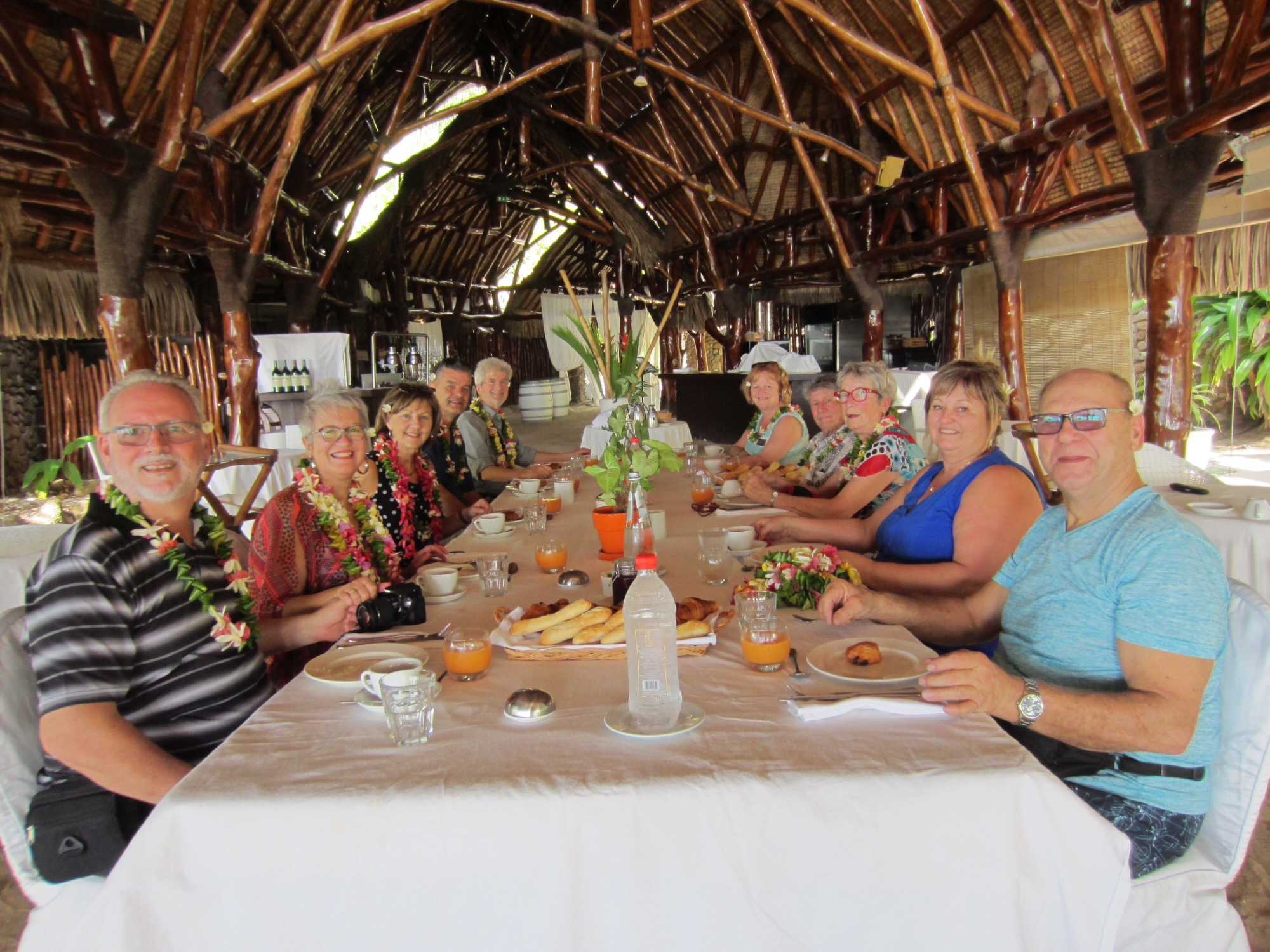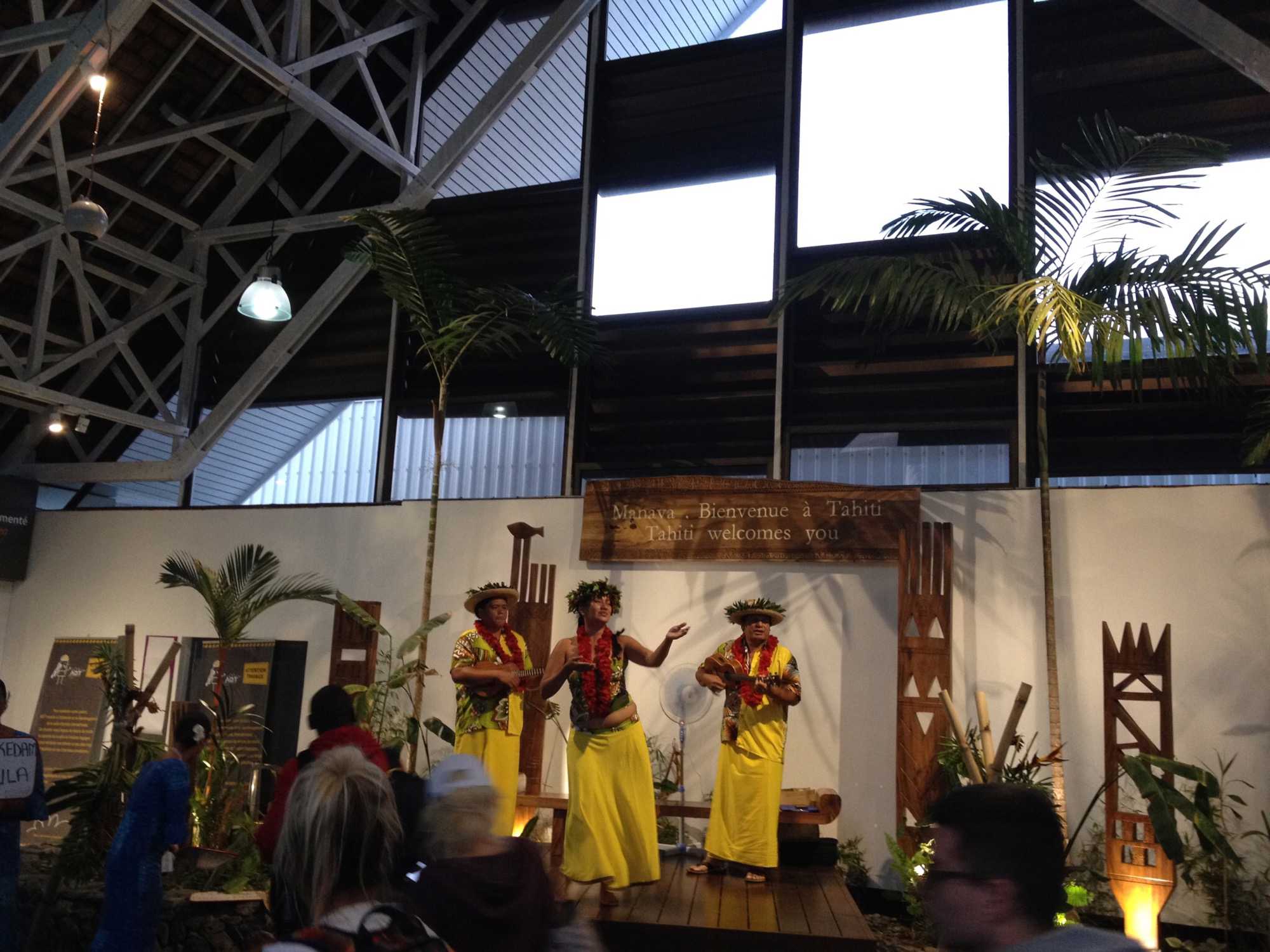 Nous débarquons de notre Airbus par deux escaliers extérieurs nous permettant immédiatement de respirer à pleins poumons l’air chaud et humide de l’endroit. C’est la fin du printemps dans l’hémisphère Sud et l’air se respire tellement bien. L’accueil est des plus chaleureux. En effet, deux musiciens jouant du ukulélé nous chantent une belle sérénade dans leur langue pendant qu’une danseuse polynésienne nous fait réaliser que nous venons d'arriver au paradis.