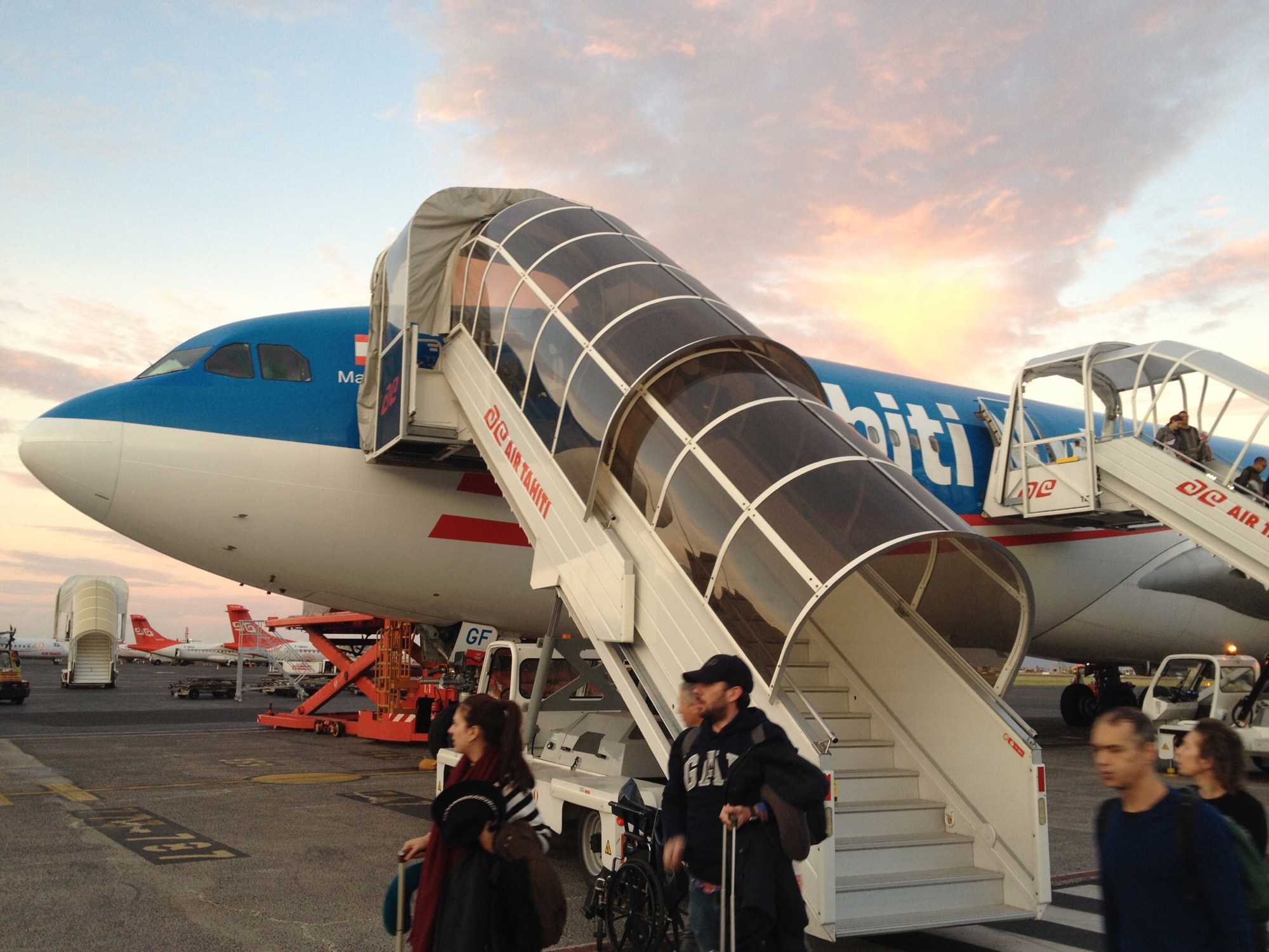 Nous arrivons vers 5 heures du matin à Tahiti en cette belle journée ensoleillée du 13 novembre. Le vol s'est très bien déroulé et presque sans turbulences. Nous sommes tous un peu fatigués mais heureux de nous retrouver en Polynésie française!