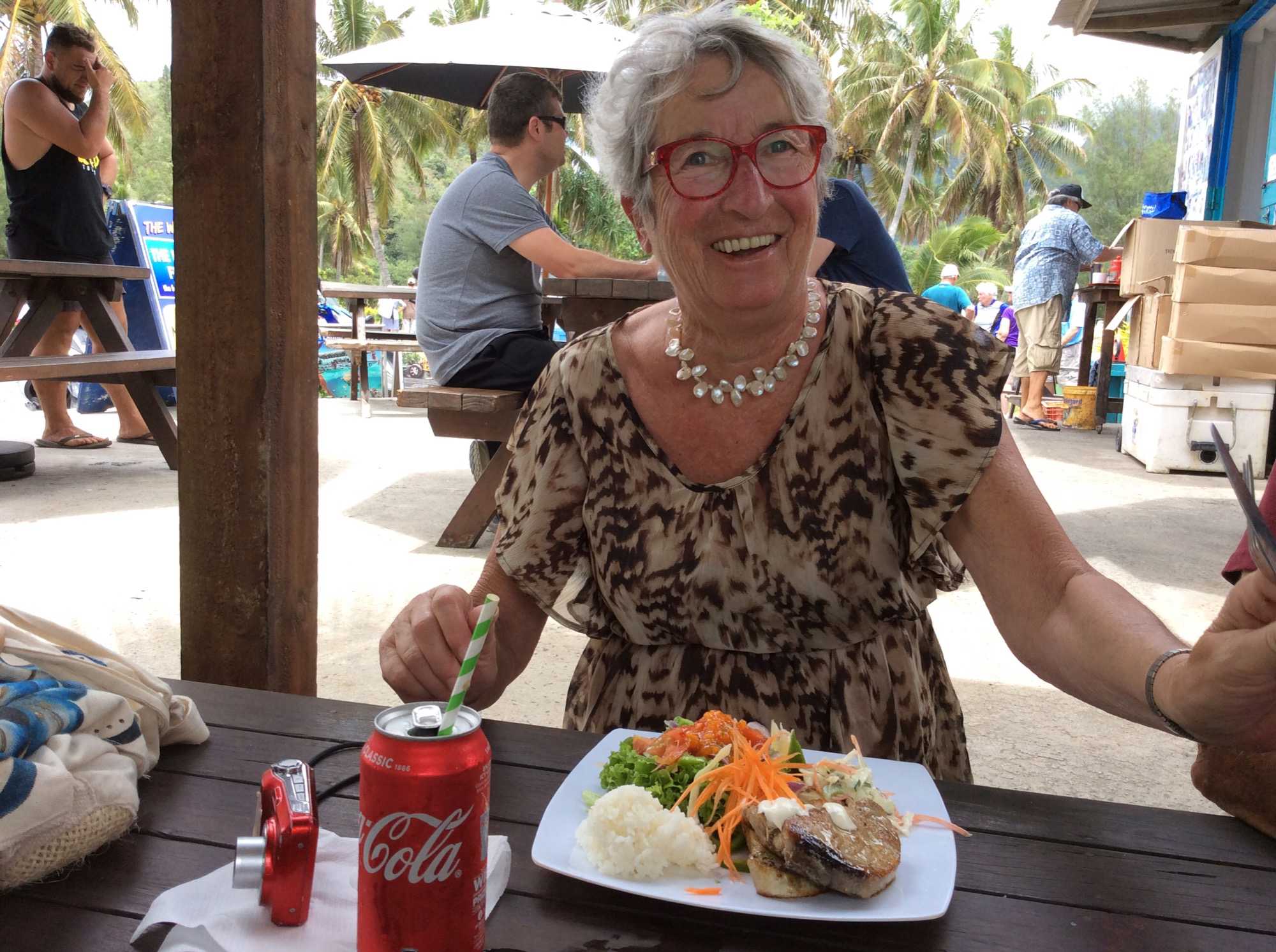 Le dîner nous est servi au Mooring Café avec au menu du poisson frais pêché et préparé sur place. Nous avons bien mangé et c’était très bon.