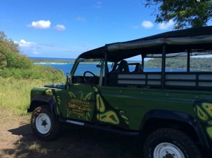 Rapidement, on constate que nous connaîtrons des sensations fortes avec notre guide Moana lorsqu’il met son véhicule en mode 4X4 pour grimper la première montagne. Ce sont des chemins forestiers sur la terre battue et la roche. Notre guide et chauffeur, Moana, est natif de la Polynésie et son coup de volant est à la hauteur de sa connaissance de l'île.