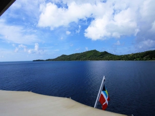 Ce matin, c’est le port de la très populaire île de Bora Bora qui nous accueille. En effet, Bora Bora est probablement la plus connue des îles de la Société et ainsi, la plus touristique! Notre navire y sera à quai ce soir encore donc, nous ne quitterons Bora Bora que demain.