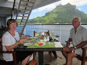 Une autre belle journée et le navire restera à l’ancre pour la nuit dans la belle baie de Bora Bora.
