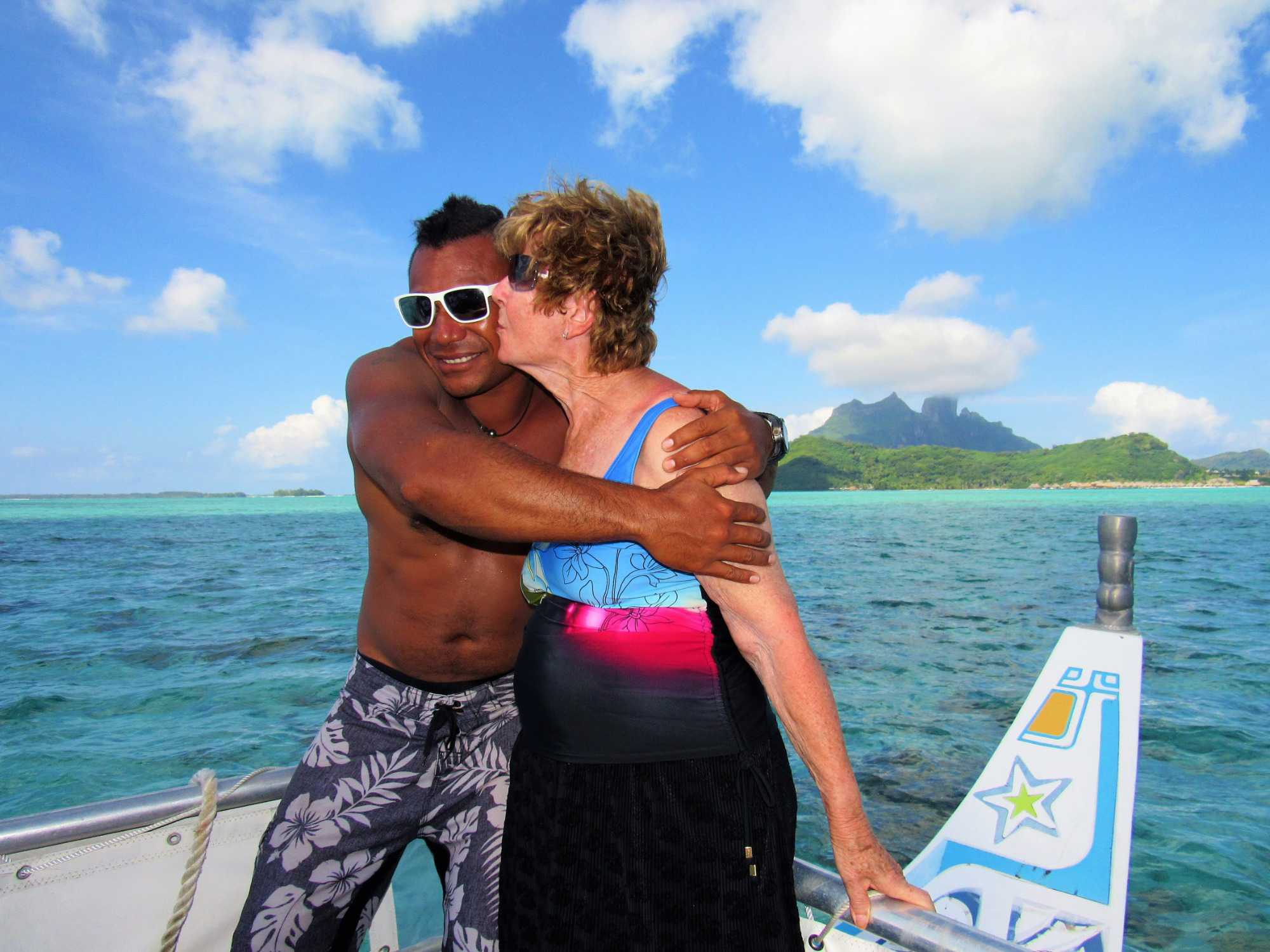Après cet après-midi extraordinaire, nous sommes revenus vers le navire accompagné de la musique amusante de nos 3 mousquetaires. Quelle belle journée a Bora Bora!