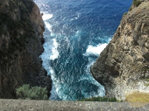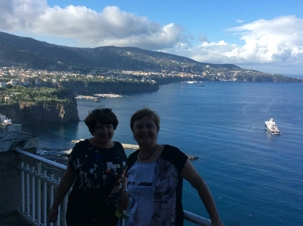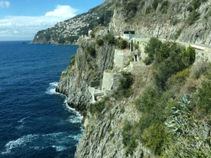 Puis, nous reprenons la route: cap direction Amalfi. Nous poursuivons ces routes sinueuses à flanc de falaise qui côtoient des corniches escarpées, nous offrant à chaque tournant des vues splendides sur ces paysages uniques à couper le souffle! Tellement qu'à certains endroits, lorsque nous regardons par la fenêtre, c'est le vide total et nos yeux sont plongés dans un profond précipice! Impressionnant! Nos nouveaux mariés Manon et Michel expriment des soupirs...surtout ceux témoins d'un vertige certain !! Et les gens qui étaient assis à l'avant ont eu un spectacle à leur plus grande satisfaction!