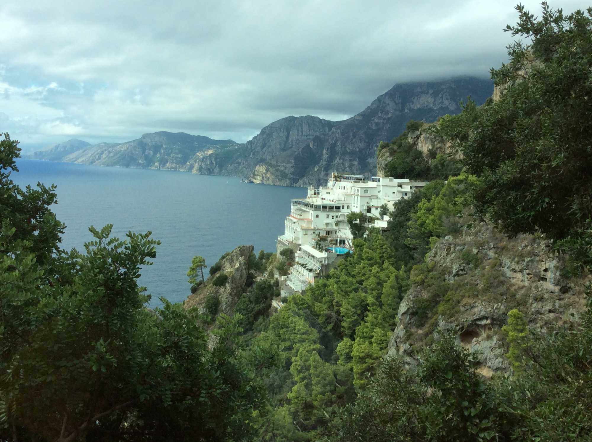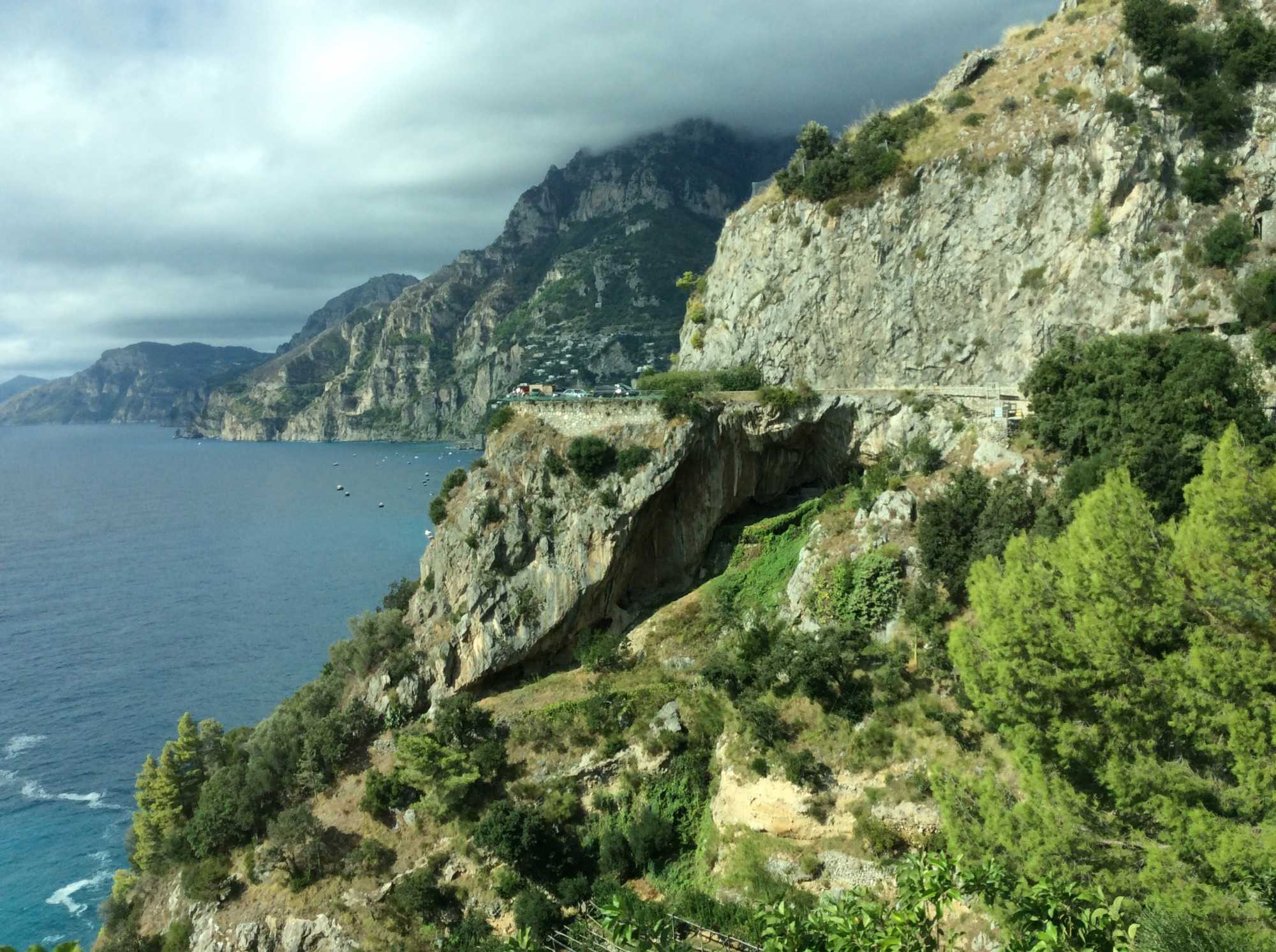 Traversant le tunnel de l’éternité (6 km de tunnel), nous nous retrouvons de l’autre coté de la montagne avec des vues impressionnantes sur la mer, Naples et le Vésuve au loin. Nos yeux sont déjà en extase! Peu importe la direction que choisit notre regard, le spectacle est majestueux.