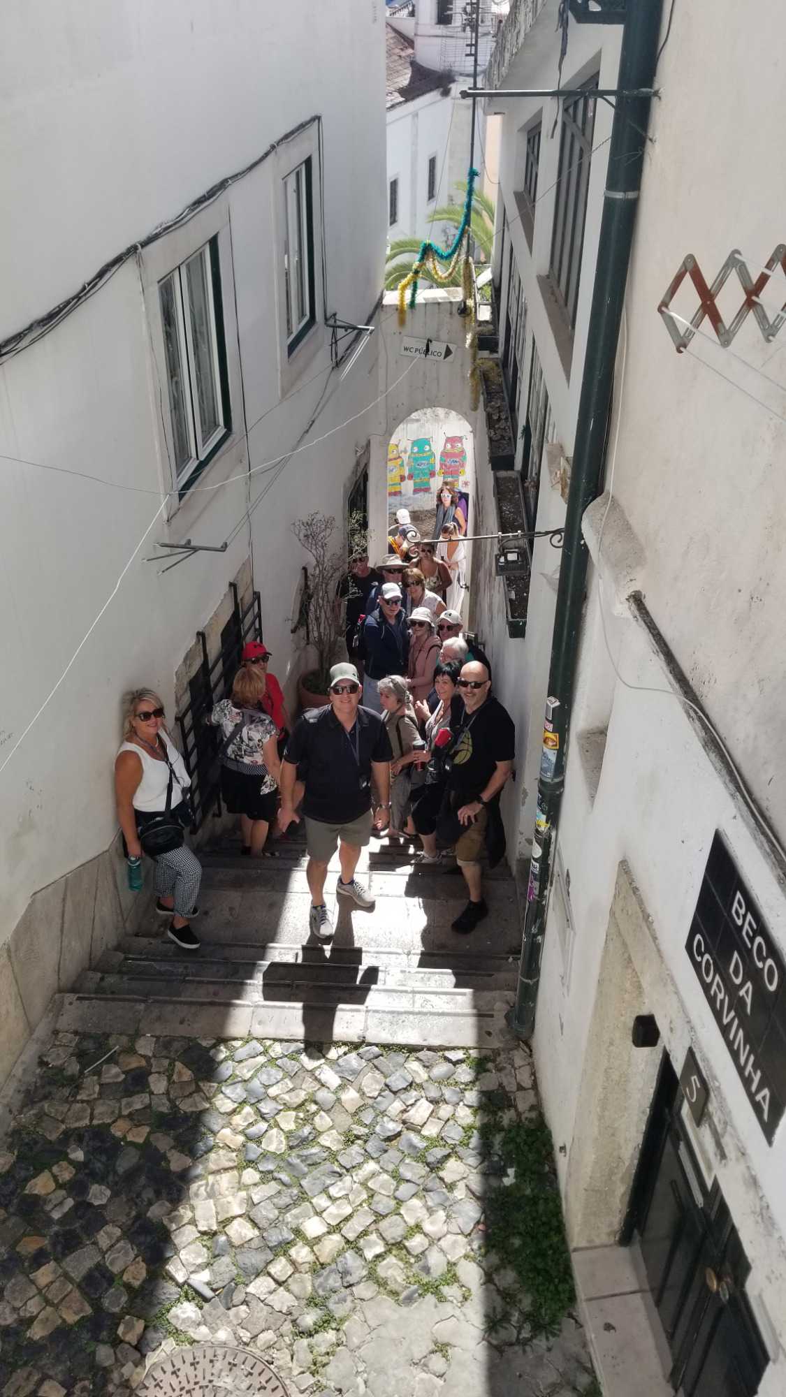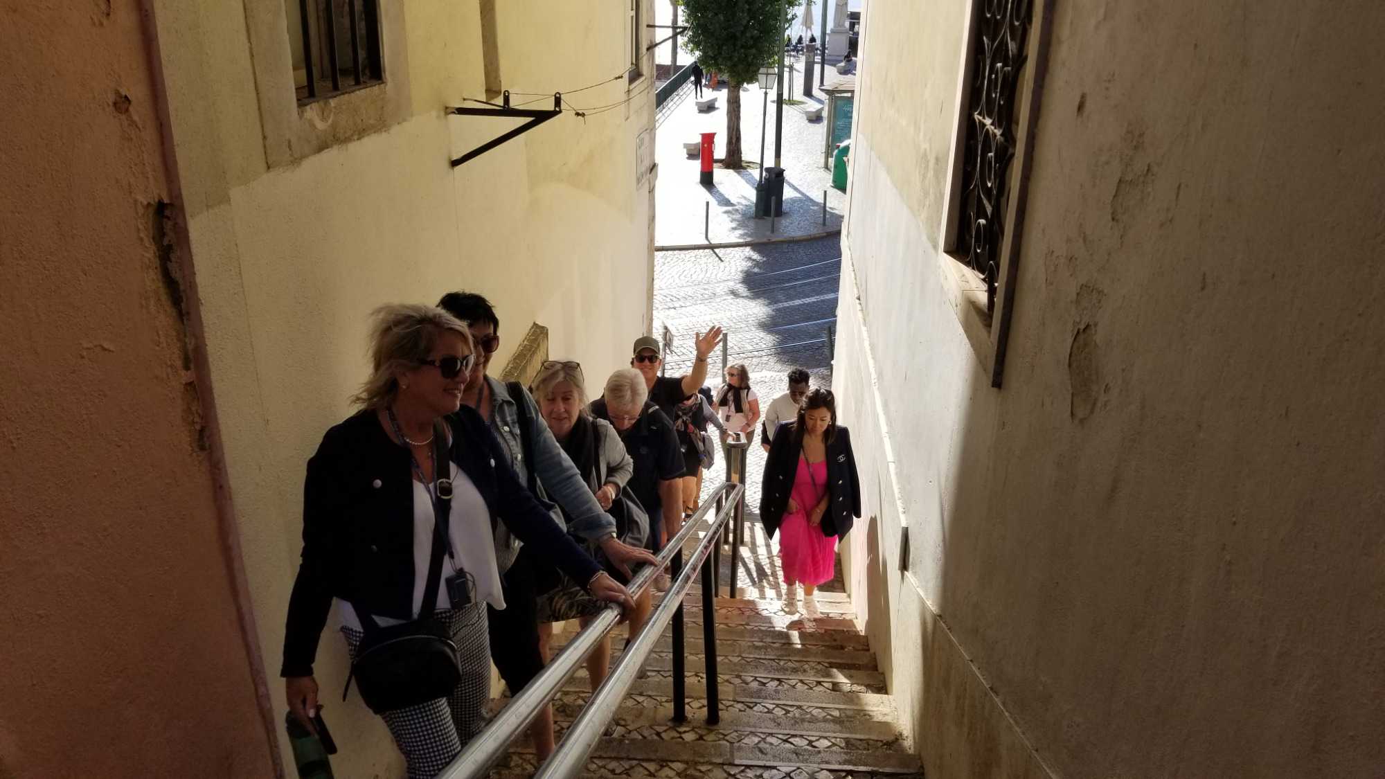 La descente vers le port nous fait voir d'autres vues pittoresques des résidences et petits commerces, la cathédrale de Sé, diverses petites églises et finalement l'église de Saint-Antoine, église de style baroque du XVIIIe siècle. On y descend pour voire la crypte, considérée comme lieu de la naissance de St-Antoine, connu par la suite comme St-Antoine de Padoue, frère Franciscain canonisé 1 an après sa mort. On termine notre exercice matinal près du port, on retrouve notre bus en route pour le dîner.